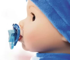 Baby Alexander is the sweetest baby doll. He can cry real tears, be rocked to sleep and even sucks his dummy. He moves his mouth when drinking water from his bottle and makes cute noises to indicate what mood he is in. You can even tickle or bounce him and he will giggle – you might even hear him do a baby ‘pop! ‘ With a soft body and adorable face Baby Alexander is the perfect gift to support a nurturing relationship between child and doll! Includes outfit, bottle, dummy, bib and charm. Requires batteries. Suitable for children aged 3+.