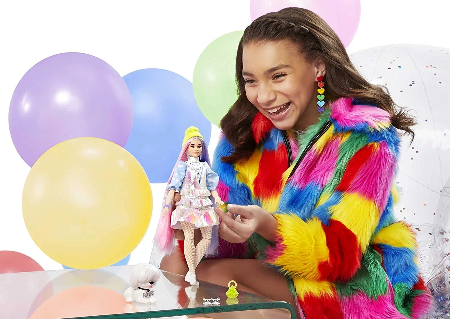 Barbie Extra dolls rock bold fashions and bright colours, and they make big statements. Each Barbie doll has their own unique style that’s playful and over the top. And their pets each different and all adorable have tons of personality, too. Barbie Extra lets kids explore self-expression through style and offers an exciting fashion and styling play experience with posable dolls.
