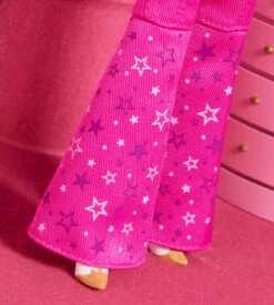 - ​Additional accessories include a cowboy hat and star-print bandana. Her all-pink getup puts a fun Barbie® twist on western style!