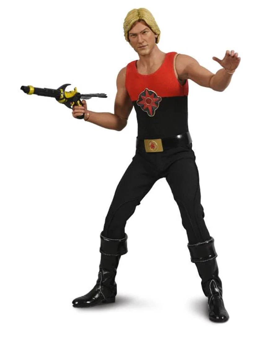 Produced under licence, this official release features a fully realised likeness of Sam J. Jones in the iconic role, complete with authentically styled costume, numerous weapons, plus a special light-up display base.