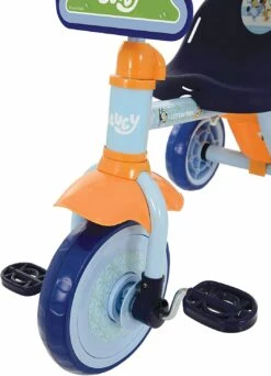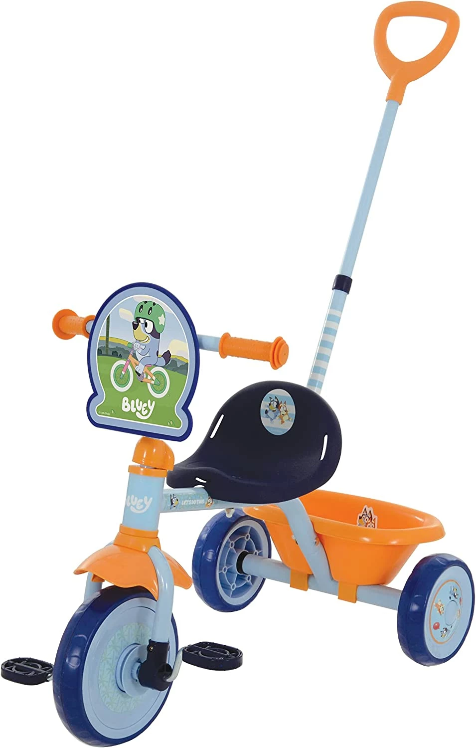 Get on the move with this super cool Bluey trike featuring character favourites! Perfect for little ones finding their feet, this ride-on is not only designed for comfort with it’s moulded seat and soft handlebar grips, but safety also with wide, puncture-proof EVA tyres for stability and sturdy steel frame. A front mudguard prevents riders from getting too messy and protects from debris.