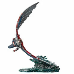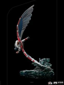 On a base that resembles the Hudson River, cutting through the waters with one of its mighty mechanical wings, the new winged Sentinel of Liberty uses all of its enhanced maneuverability and agility skills, as an actual bird of prey, with its new outfit with stars and stripes in the colors of his country’s flag, carrying on his back the legendary shield of his predecessor. He flies at high speeds over New York City on a mission to rescue the victims of the terrorist and anti-nationalist group known as Flag Smashers. Inspired by the “One World, One People”, the sixth and final episode of the first season of the miniseries “The Falcon and the Winter Soldier” on the Disney+ streaming channel, Iron Studios presents the statue “Captain America Sam Wilson Deluxe – The Falcon and the Winter Soldier – BDS Art Scale 1/10”, with the hero, formerly called Falcon, taking on the name and legacy of the first avenger.