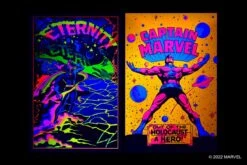 Included in this second volume are 12 additional rare images from the original series of 24 posters, which were first printed in 1971 by Marvel Comics and the famed black-light publisher Third Eye, Inc. The portfolio also features a brief history of Third Eye and their Marvel Comics black-light publishing program by historian and former Marvel editor in chief Roy Thomas, along with images of the original comic book art featured on the posters.