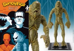 This authentic, intricate bendable figure of the Gill-man, also known as the Creature from the Black Lagoon, includes a stand for display and is approx 7.5″ in height.