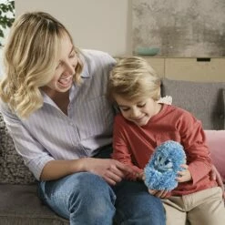 Blue Badger has his own unique noises, stroke his fluffy fur and he tells you how happy he is, touch the top of Blue’s head to activate sound effects and movements. His range of super-cute spoken phrases include “Big love.”, “Let’s play.” and “Tickle my tummy.” Blue also makes crazy giggling noises, hiccups, blows raspberries – and sometimes farts. Tickle his tummy and Blue laughs with delight. He also says, “Laters.” and curls into a ball before making gentle sleeping noises.