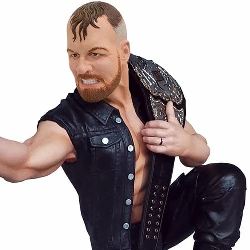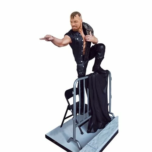 The Wild Thing has entered the building! Looking at this approximately 10-inch Gallery Diorama of All Elite Wrestling champion Jon Moxley, you can practically hear his entrance music! Standing on a chair with one foot up on a barricade, Moxley holds his belt draped over his shoulder and points at his would-be challenger. Designed by Gariel Cassata and sculpted by Patrick Piggot, this statue is made of high-quality PVC and features detailed sculpting and paint applications.