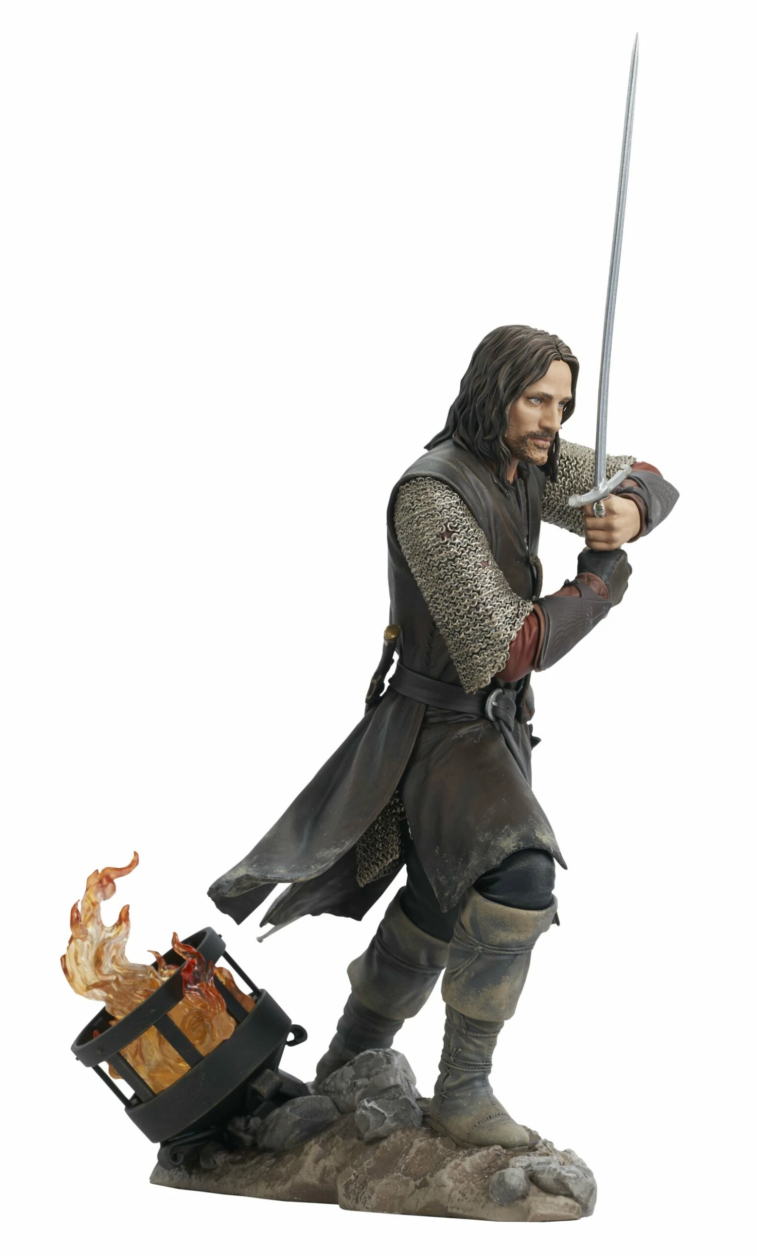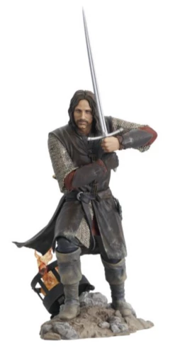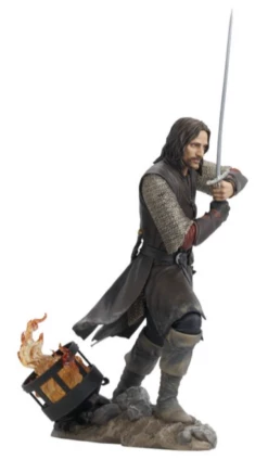 It’s the Return of the King! Aragorn, son of Arathorn, is the first in a line of Gallery Dioramas based on the Lord of the Rings movie trilogy! This approximately 10 inch tall sculpture shows “Strider” with his sword at the ready, and is made of high-quality PVC with detailed sculpting and paint applications. It comes packaged in a full-color window box.