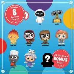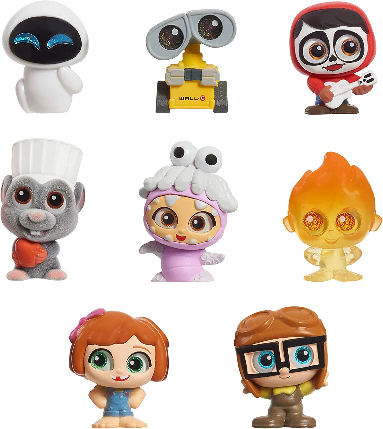 - This exciting collector set contains 8 different figurines, including Remy, Jack-Jack Parr, WALL-E, EVE, Boo, Miguel, young Ellie, and young Carl.