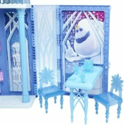 - ELSA’S FOLD AND GO ICE PALACE: Portable playset with foldability, accessory storage, and carrying handle