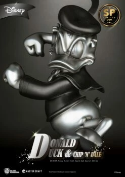 Beast Kingdom, ‘The Entertainment Experience Brand’ proudly presents the latest Master Craft release of the very finest statues for the serious collector. The MC-013SP is a special, high-end edition of Donald Ducks release, which now includes two fun and crazy little chipmunk brothers Chip ‘n’Dale! Presented in a luxurious, hand painted two-tone metal and bronze colours, the statue sees the silver painted Donald wearing his signature sailor costume in the midst of losing his temper. The chipmunk duo however are painted in bronze and look as though they have been rather naughty as they run away from Donald! Both are able to be placed anywhere around the statue, creating any scene that fans would like.