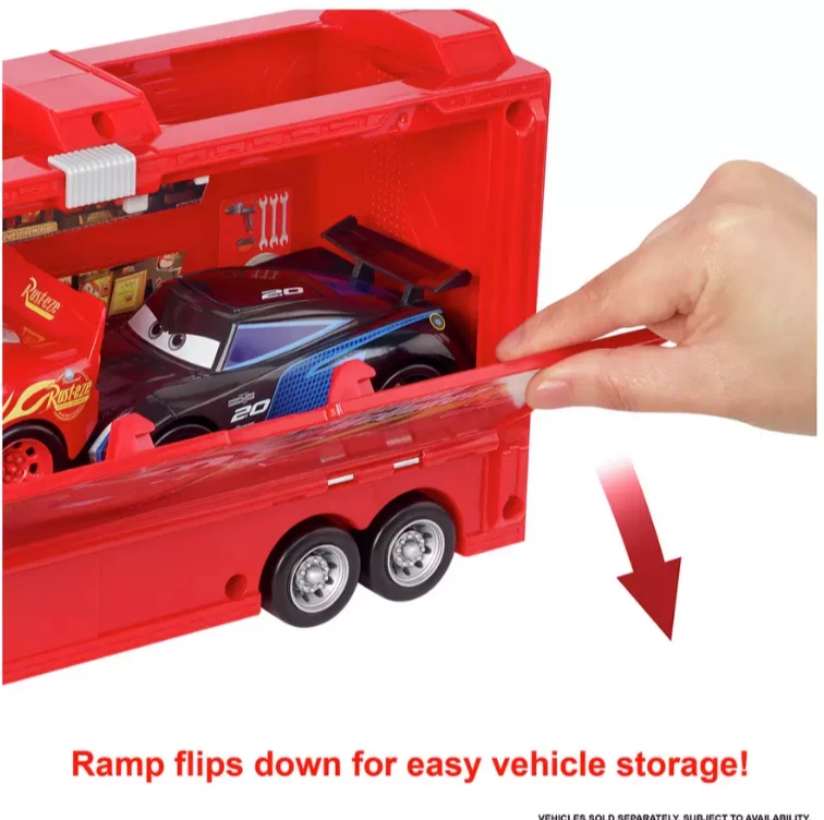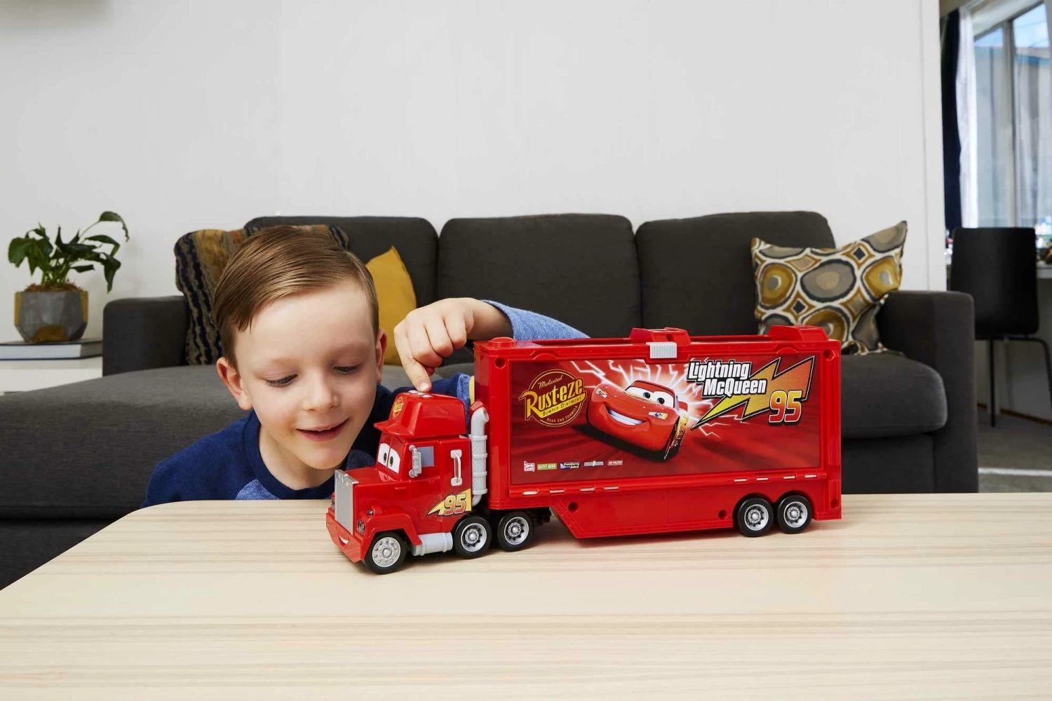 Lightning McQueen’s transporter Mack is a fan favourite, and he comes to life with lights and audio! Mack emits his own authentic sounds to help play out favourite scenes from Disney and Pixar’s Cars movies. Place any Track Talker inside Mack’s trailer to unlock unique sounds! Almost 17-inches long, Mack can store up to two Track Talker vehicles (sold separately). Disney and Pixar’s Cars fans will have a blast re-enacting their favourite movie moments and creating new scenes starring their favourite race car hauler.