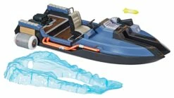 - Features a detachable missile accessory, articulating thrusters, and a display stand to pose the Victory Royale Series Motorboat toy moving through water