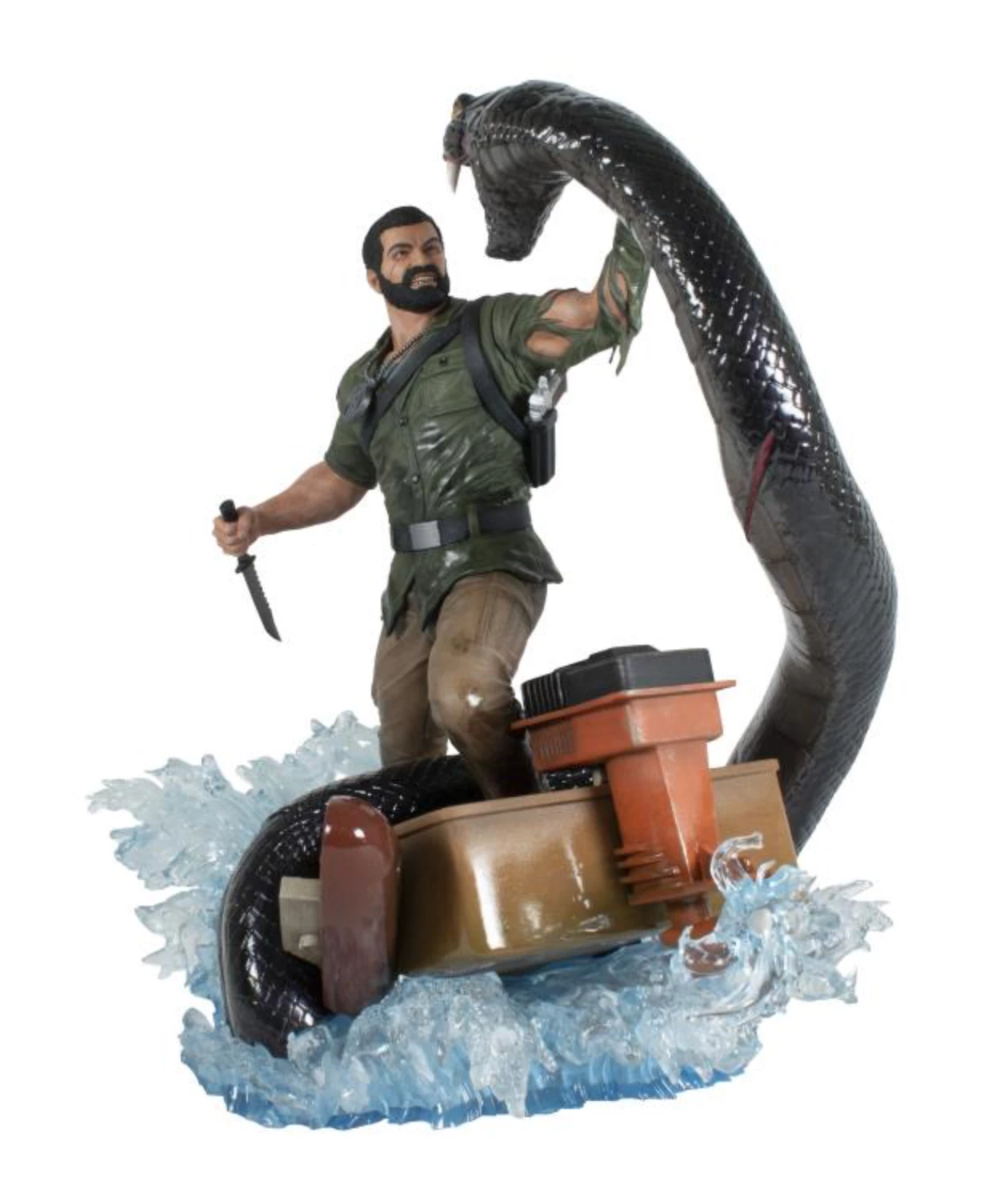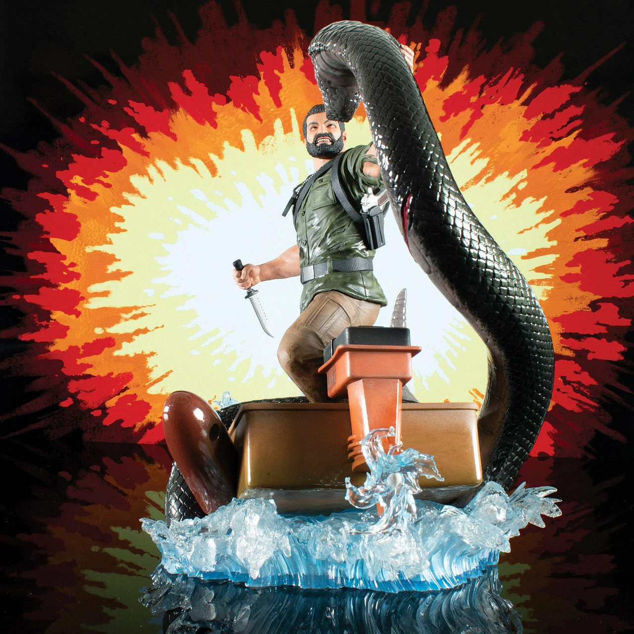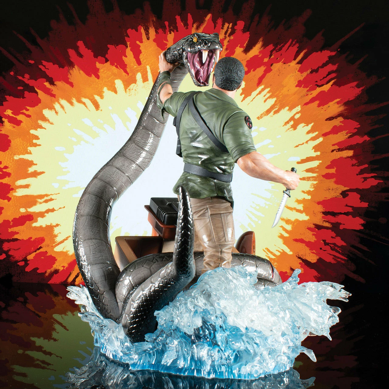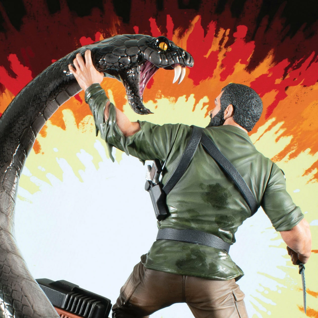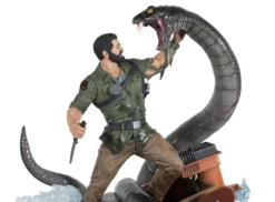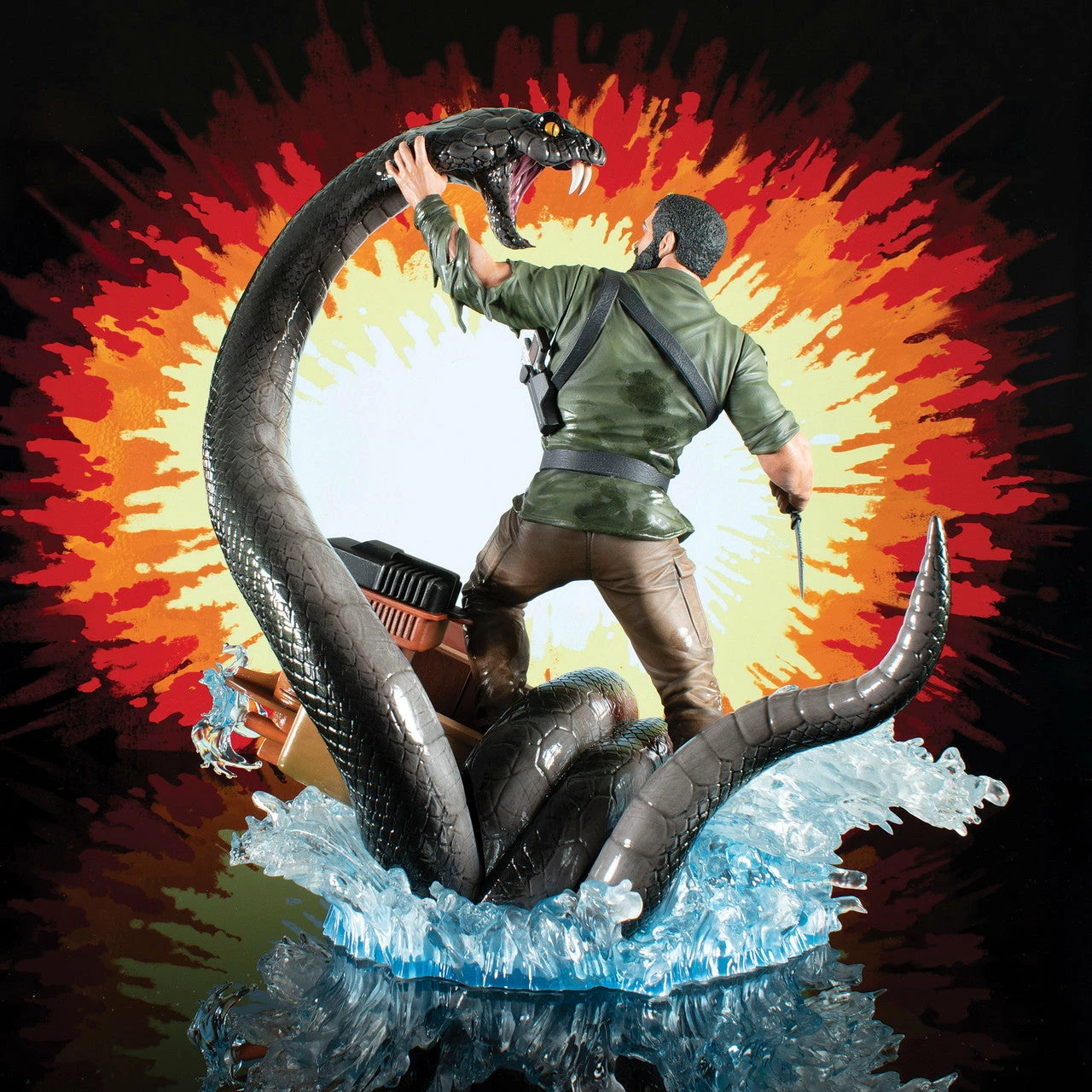 A Diamond Select Toys release! It’s time for adventure! G.I. Joe team founder Joseph Colton returns to his Adventure Team roots in this all-new Gallery Diorama depicting him battling a giant snake! Standing approximately 10 inches tall, this dynamic sculpture is made out of high-quality PVC and features detailed sculpting and paint applications. It comes packaged in a full-color window box. Designed by Barry Bradfield, sculpted by Rocco Tartamella!