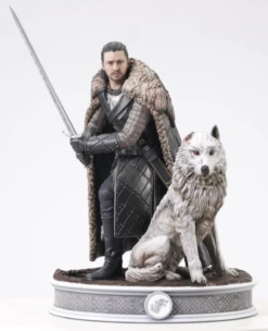 A Diamond Select Toys release! It’s an all-new product line from Diamond Select Toys, based on the hit HBO series Game of Thrones! In this inaugural sculpture, Jon Snow crouches, sword at the ready, as his injured direwolf Ghost looks on. Both are in their Season 8 appearances, and this piece measures 10 inches to the tip of Jon’s sword. It comes packaged in a full-color window box. Designed by Nelson X. Asencio, sculpted by Ed Trujillo.