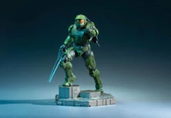 - The statue features the Master Chief heroically in action with grappleshot firing and energy sword at the ready
