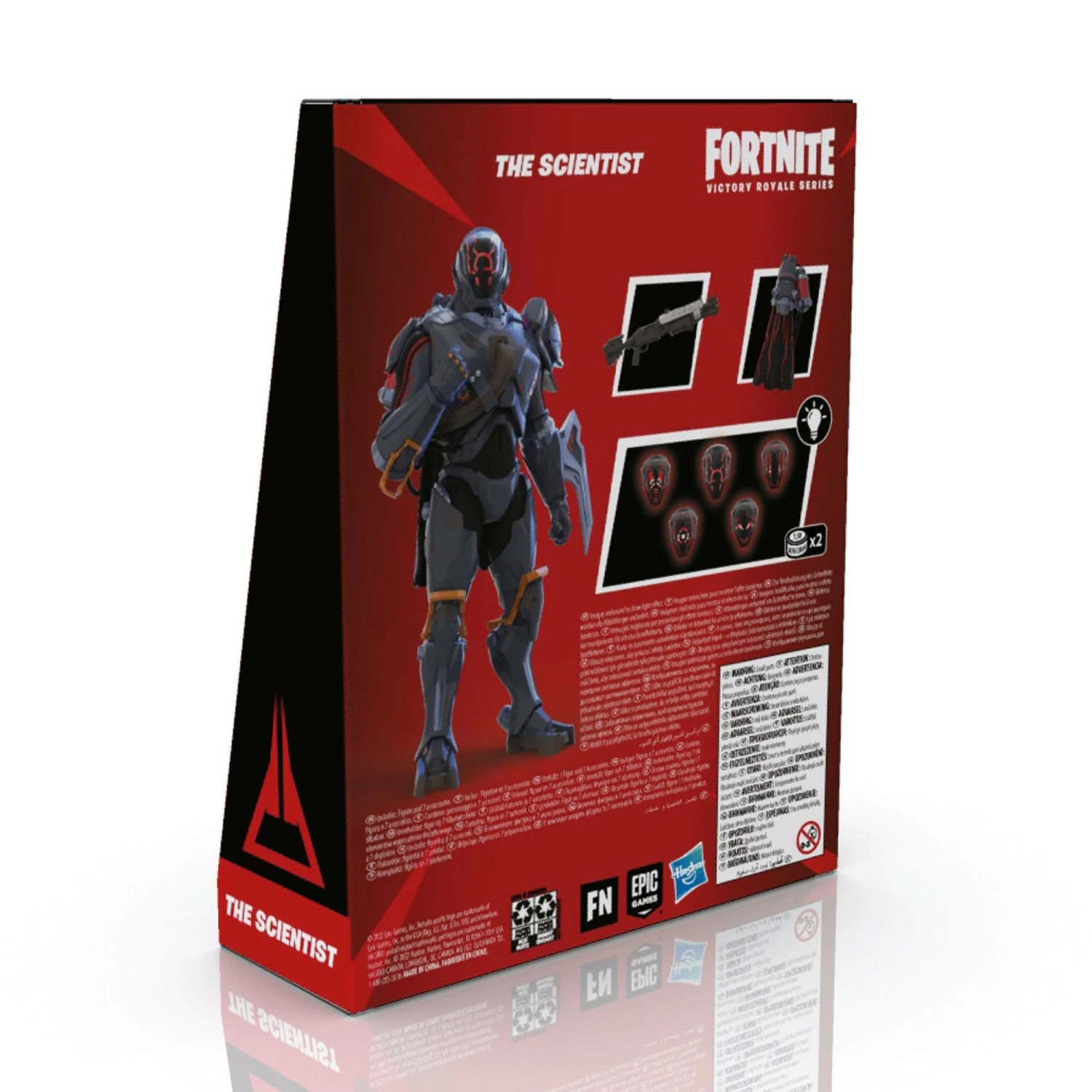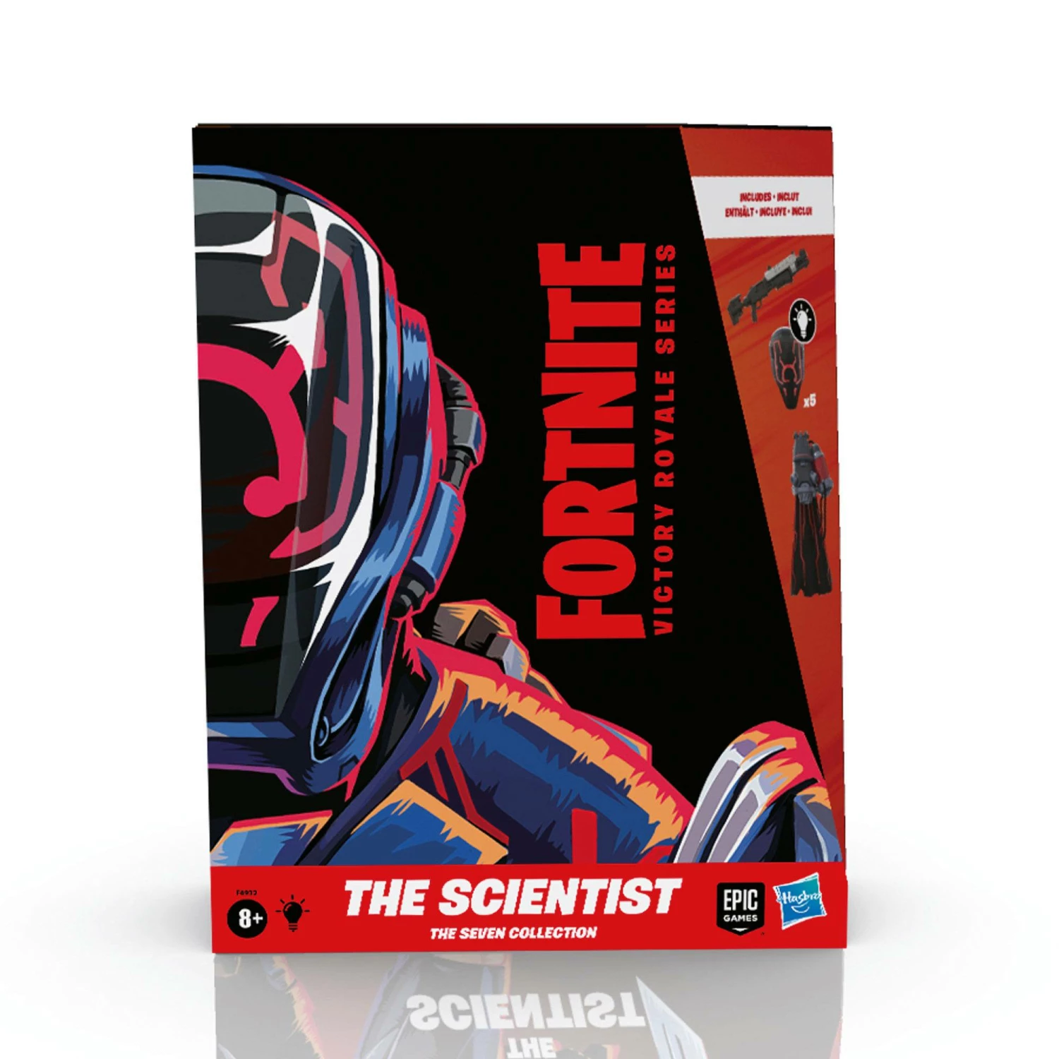 The Scientist drops off the Battle Bus and glides into the Victory Royale Series! This 6-inch action figure shows the popular character outfit with game-level deco and details. This figure comes with 6 button-activated LED face plates that light up, plus Star Surge Back Bling and weapon accessories! Pose out the figure in an epic battle stance or bust a move in a dance emote with more than 20 points of articulation!