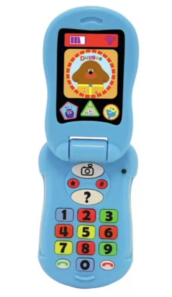 Call Duggee and the Squirrels! Have fun learning about colours, numbers and fun facts from the Squirrels with this interactive flip up phone. It has a backlit screen and asks the child to find numbers and colours, listen to greetings and pretend to take pictures.