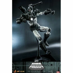 - Matte black and metallic silver-colored streamline War Machine armour design