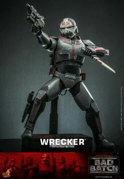 The collectible figure features Wrecker’s armor and helmet with weathering effects and unique markings, an interchangeable head sculpt with realistic likeness, a blaster, a blade, and a display base!