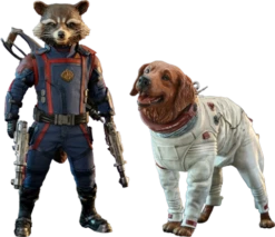 Hot Toys presents the 1/6th scale Rocket & Cosmo Figure Set as featured in Guardians of Galaxy Vol. 3. This well-crafted collectible accurately captures Rocket the talking raccoon’s look from the movie, from his finely sculpted head with fur detail to his navy-blue combat suit with emblem on chest. The set also includes an array of weapons and accessories, such as heavy blaster and pistols, key card, and dynamic figure stand for aerial poses. To round out the set, we have Cosmo the spacedog featuring hyper-realistic paintworks. Add this Marvel collectible to your collection with attitude today!