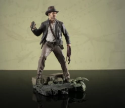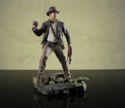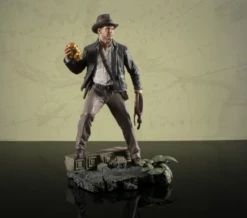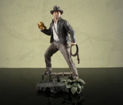 It belongs in a museum! The saga of Indiana Jones is captured in this approximately 11-inch tall resin sculpture of the archaeologist-adventurer. With a whip in one hand, and three different display options for the second hand — golden idol, Sankara stone and Holy Grail — this 1/7 scale statue is the ultimate tribute to the hero of civilizations past and present. Limited to only 3000 pieces, it comes packaged in a full-color box with a numbered certificate of authenticity.Â