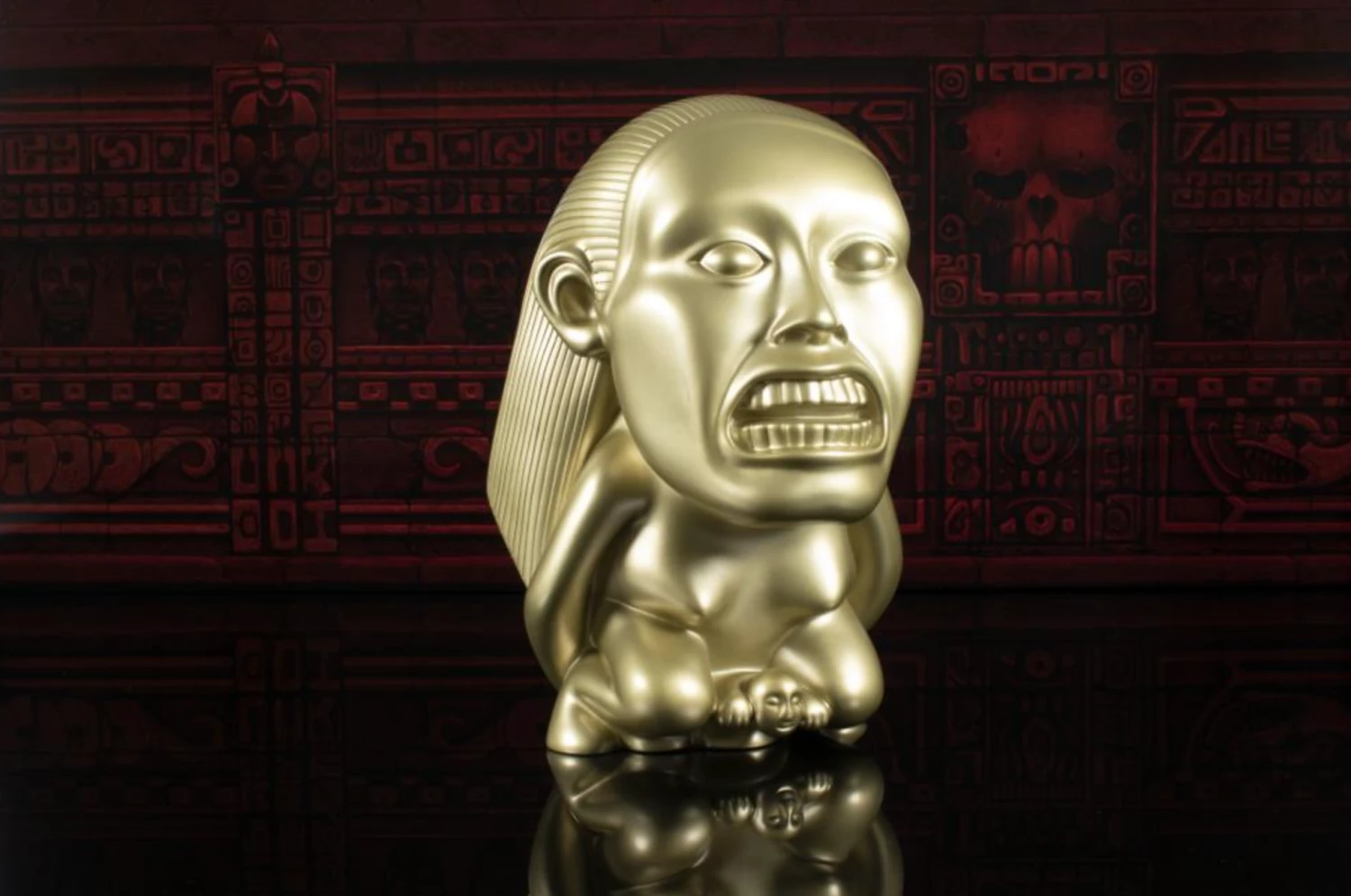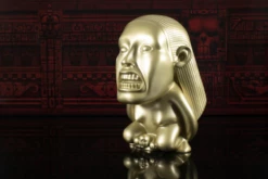 Throw me the idol! The iconic golden idol from the beginning or Raiders of the Lost Ark is back, in vinyl bank form! Measuring approximately 8 inches tall, this realistic bank is made of high-quality vinyl, with a coin slot on the back and a removable plug on the bottom. Giant boulder not included!