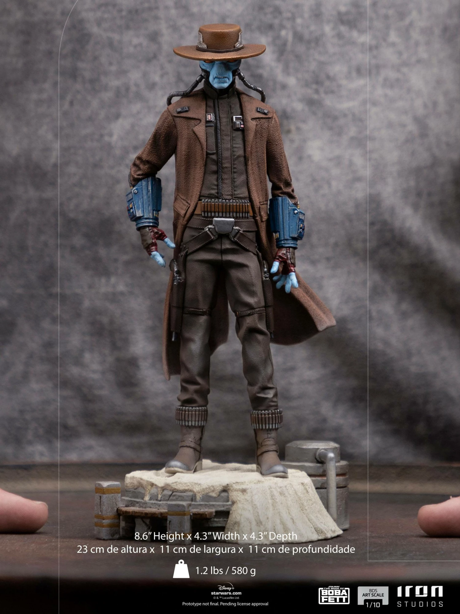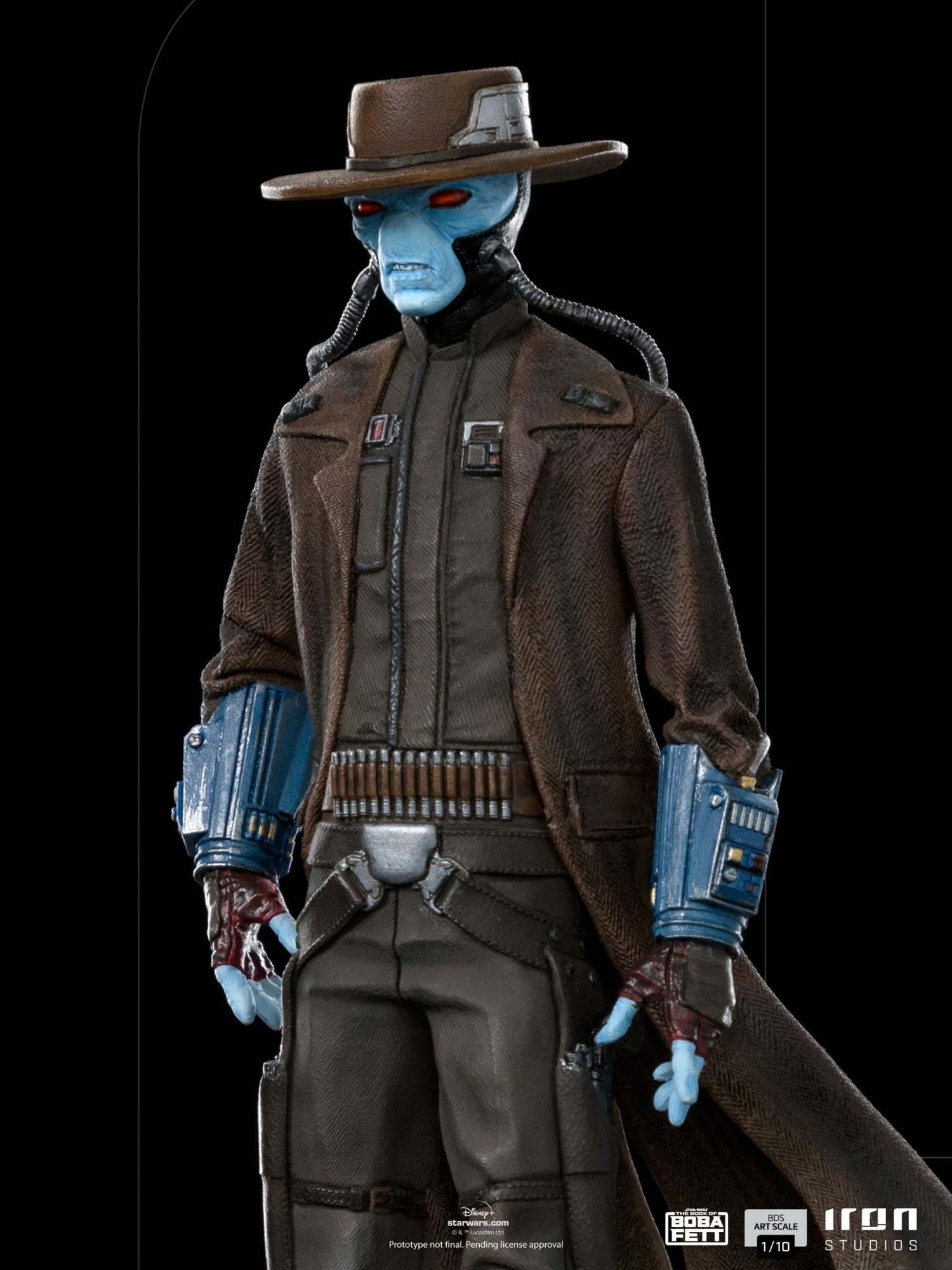 Walking on the scorching sands of the barren desert from planet Tatooine, at the gates of the city of Freetown, just like an American Old West gunslinger, a sinister and slender figure with cruel red eyes under his characteristic wide-brimmed fedora, wearing a brown overcoat, positions his skillful and fast hands, ready to draw his twin blaster pistols LL-30 from his belt holster, challenging the local sheriff Cobb Vanth for a duel. In the month of May, commemorating the Star Wars saga, Iron Studios proudly present their statue “Cad Bane – The Book of Boba Fett – Art Scale 1/10”, with the relentless mercenary and bounty hunter inspired by the iconic scene from the sixth episode of the series from the Disney+ streaming service “The Book of Boba Fett”, series derivative from “The Mandalorian” from the universe of Star Wars, where the character made its live-action premiere.