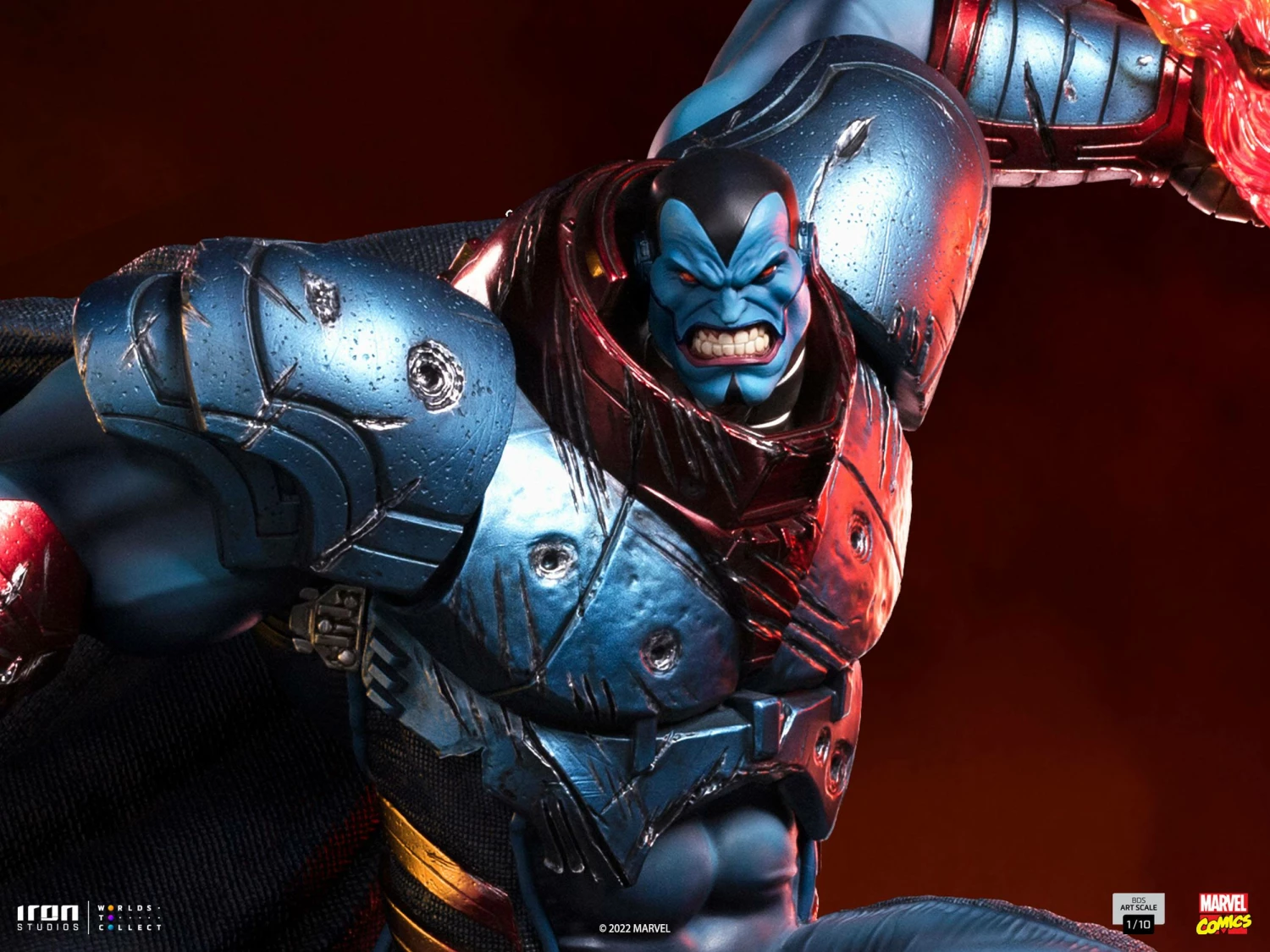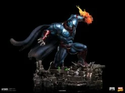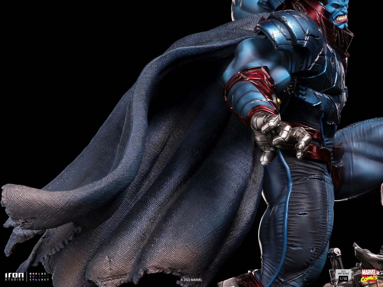 Crushing the metal below his feet with strength and weight, over a pedestal made of mechanical artifacts and alien technology, the mighty, giant, and immortal Egyptian mutant gets ready to throw an energy explosion against his opponents, created in the shape of a glowing plasma sphere on his left hand. Capable of changing his size at his will, thanks to his control over the molecular structure, his large body is wrapped by an armor created by the race of cosmic giants known as the Celestials, with his back covered by a cape, despite having multiple combat damage, it shows his great power and determination. With his unshakeable strength and will, together with his powers magnified using futuristic technology, Iron Studios bring the statue “Apocalypse BDS – X-Men: Age of Apocalypse – Art Scale 1/10”, with the tyrant conqueror enemy of the X-Men, inspired by Marvel’s audacious comic book saga from the 1990’s where he is the main antagonist.
