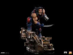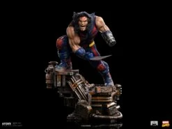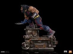 Climbing a technological pedestal filled with steel conduits and electronic components, the fierce Canadian mutant with his fury expressed on his face, unsheathes his right fist’s claws coated with the indestructible metal Adamantium (a fictional alloy), and brings his biggest scar in his left fist, of the hand that he lost in combat. Using a red and blue variant of his original costume, with his even longer, peculiar, and messy hair like a feline mane, in this other reality he takes upon his original codename as a definitive one. Iron Studios bring the statue “Weapon X – BDS – X-Men: Age of Apocalypse – Art Scale 1/10”, with the version of the hero Wolverine inspired by Marvel’s audacious comics saga from the 1990s.