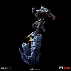 Over a base formed by imposing buildings with sinuous angles, emulating the dystopic futuristic megalopolis Neo-Gotham, its dark knight protector floats propelled by the flames from his boosters on his feet, nimbly directing his flight with his gliding bat wings spread beneath his arms. Using a high technology costume that, besides allowing him to fly, also gives him superhuman strength, agility, and endurance, adding to his guidance and training with his predecessor and mentor, the new Dark Knight wages his own crusade against evil, facing his own archenemies rogues gallery. Iron Studios proudly present their statue “Batman Beyond – DC Comics Series #8 – Art Scale 1/10”, with the futuristic version of the hero created by Bruce Timm, Paul Dini, and Alan Burnett in the iconic animated series created by The WB Television Network in 1999.