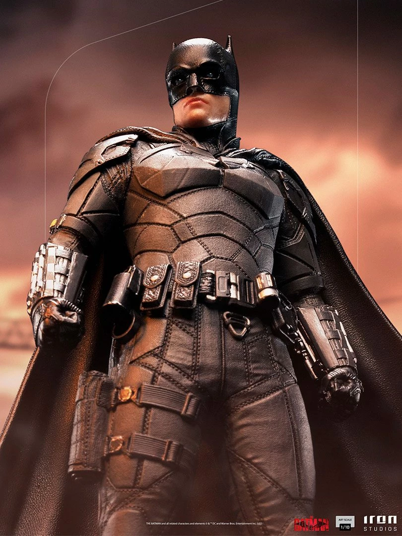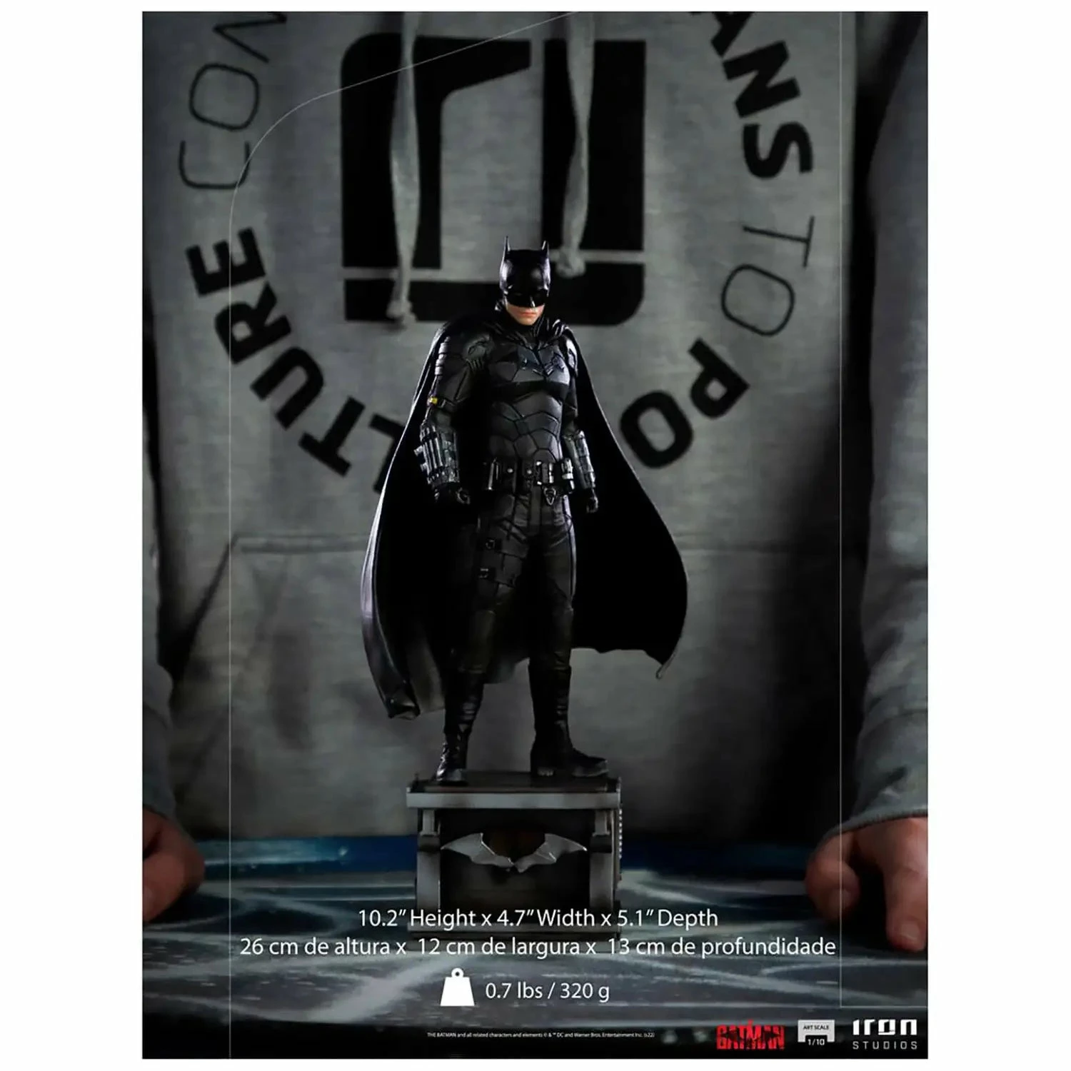 Over the cold skyscrapers in the gloomy city of Gotham, the dark image of the Dark Knight watches the alleys, the most obscure corners, imposing fear in the hearts of the wicked on his crusade for justice and revenge. Facing the most insane criminals, corrupt public workers, and powerful mobsters, he makes use of his long training, his deductive skills, and his unshakable will to bring hope to the citizens of the city he has sworn to protect. Using a black tactical suit filled with gadgets reflecting the appearance of a big bat that represents his identity, Iron Studios proudly present the statue “The Batman – The Batman – Art