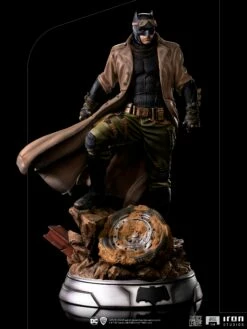In a caustic and unusual habitat, the relentless and determinate Dark Knight searches for a way to defeat the forces of a conqueror tyrant from a distant world, that together with the corrupted Man of Steel, transformed the full of life Earth in a devastated desert. Cautious and exhausted by the years of combat, he still maintains determinate, climbing a pedestal made of mud, debris and corroded metal rebars, and the rests of a vehicle in the shape of a wheel with tire, he remains imposing, wearing a khaki overcoat with tactic military trousers over his original costume, and a pair of combat glasses over his mask to protect his eyes from the sandstorms of this desert world, he takes the leader position of a rebel team. In great scale, Iron Studios bring the statue “Batman Knightmare – Zack Snyder’s Justice League – Legacy Replica 1/4″, inspired by the parallel plot of a possible future, presented in the Justice League movie, in Zack Snyder’s version better known as Snyder’s Cut.