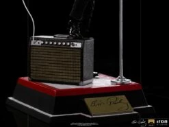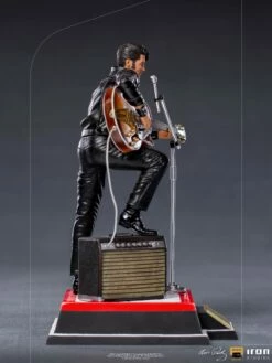 On a red and white base, which reproduces part of the real stage of his show, and with his signature on the front, he poses with his right leg on his “Benson 200” amplifier, supporting his semi-acoustic guitar “Gibson Super 400 CES 1963 “. The statue also has a microphone stand with a peculiar round base in front of it. In this way, Iron Studios proudly presents its Elvis Presley Comeback Deluxe Art Scale 1:10 – Iron Studios statue, replicating the legendary King of Rock in one of his most acclaimed performances, also the first figure derived from the pop music universe produced by Iron Studios.
