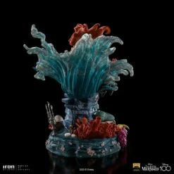 Smiling excited, the young princess from a underwater kingdom leans her small body, half human, half fish, over a base of a sea rock from her special place, where she keeps her vast treasure, a collection of human objects, antiques, and artifacts, representing special memories from her adventures and new discoveries from ship wreckages, caves, and even from above surface. A collection composed of gadgets, gizmos, whosits, whatsits, and thingamabobs as she calls them, but that are actually chests, silverware on a candelabrum, pottery, bottles, and much more, carefully stored in Ariel’s Secret Grotto. Expanding their collection that celebrates Disney’s 100th anniversary, Iron Studios proudly present the statue “The Little Mermaid Deluxe – Disney Classics 100 Years – Art Scale 1/10”, with the pretty Little Mermaid in a Deluxe version, on a diorama base followed by her friends Flounder and Sebastian over her cave with the treasures, including even a statue of Prince Eric.
