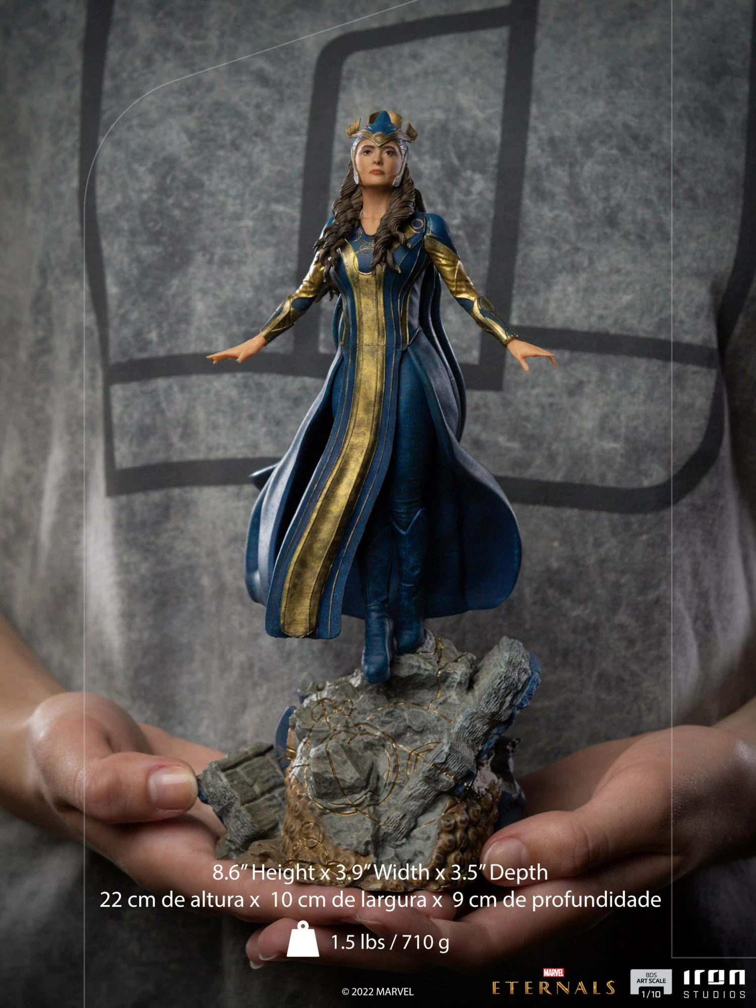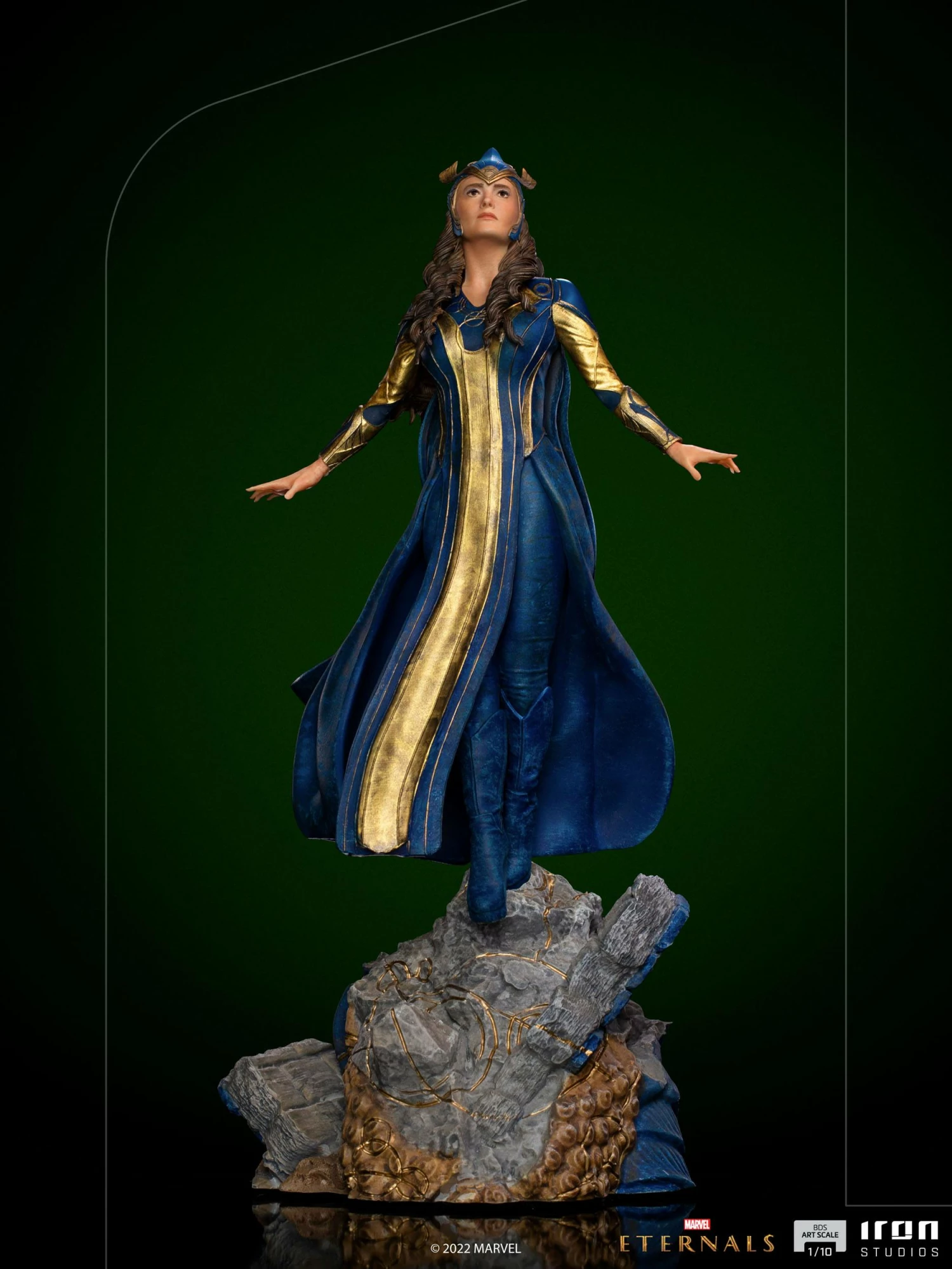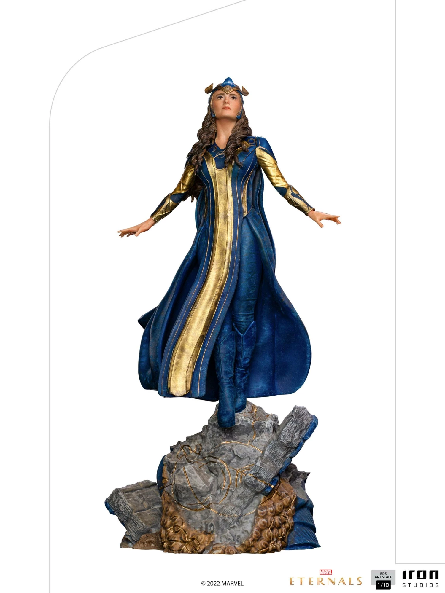Dressed in blue and golden armour, Iron Studios present the statue “Ajak BDS – Eternals – Art Scale 1/10”, with the spiritual leader and mother figure of the group of cosmic immortal heroes, and their greatest strategist, responsible for many victories over the centuries against their enemies, the Deviants.