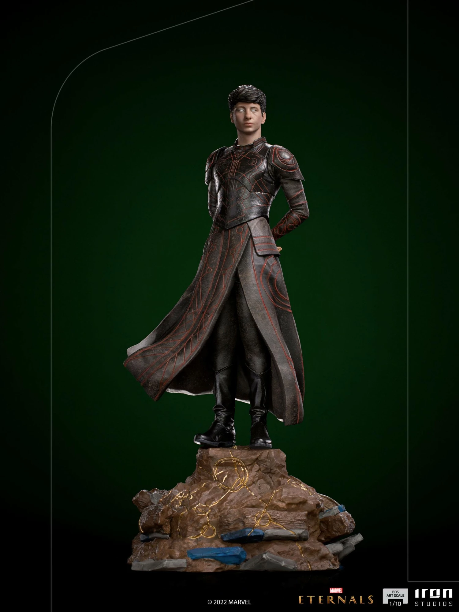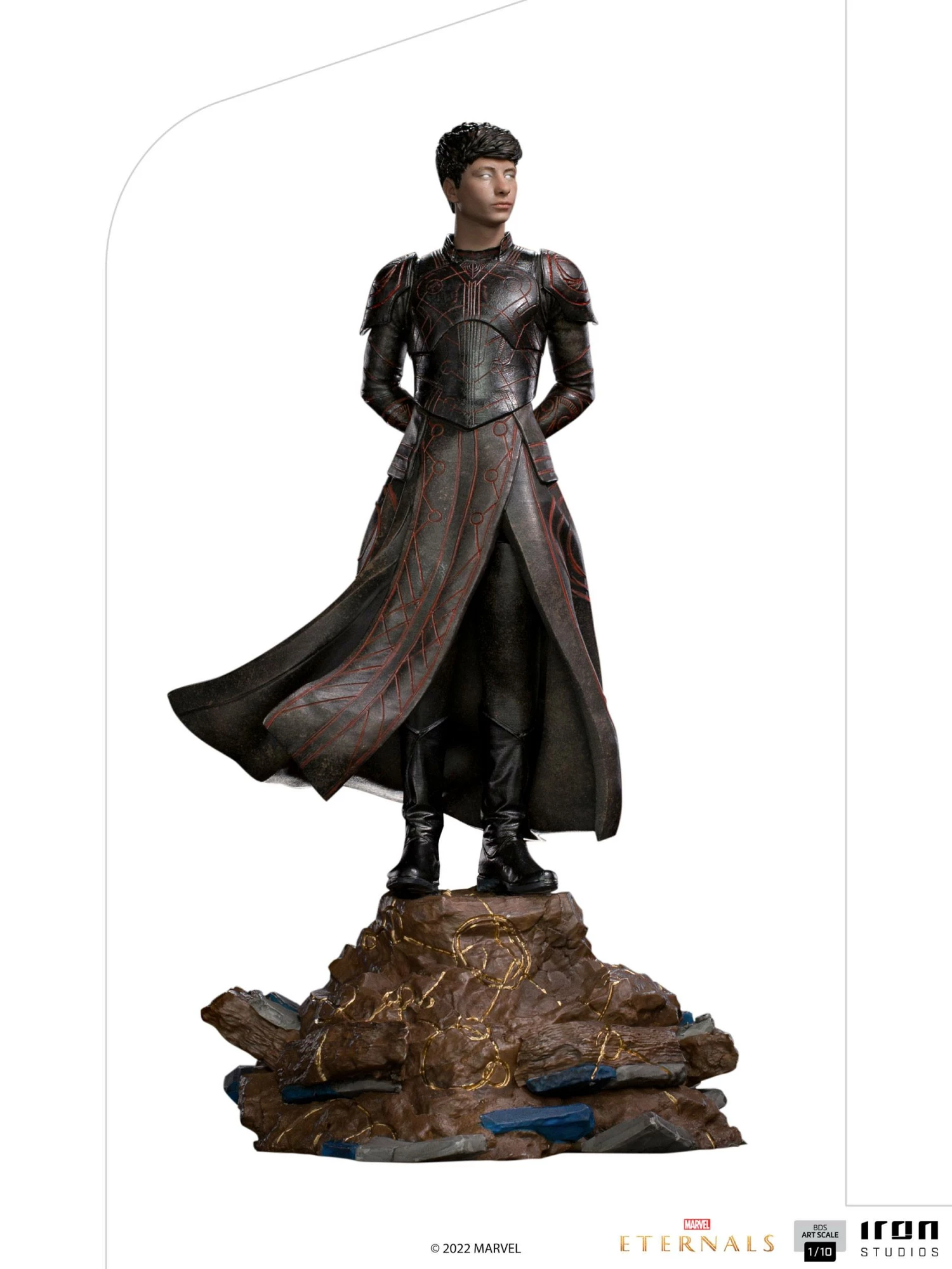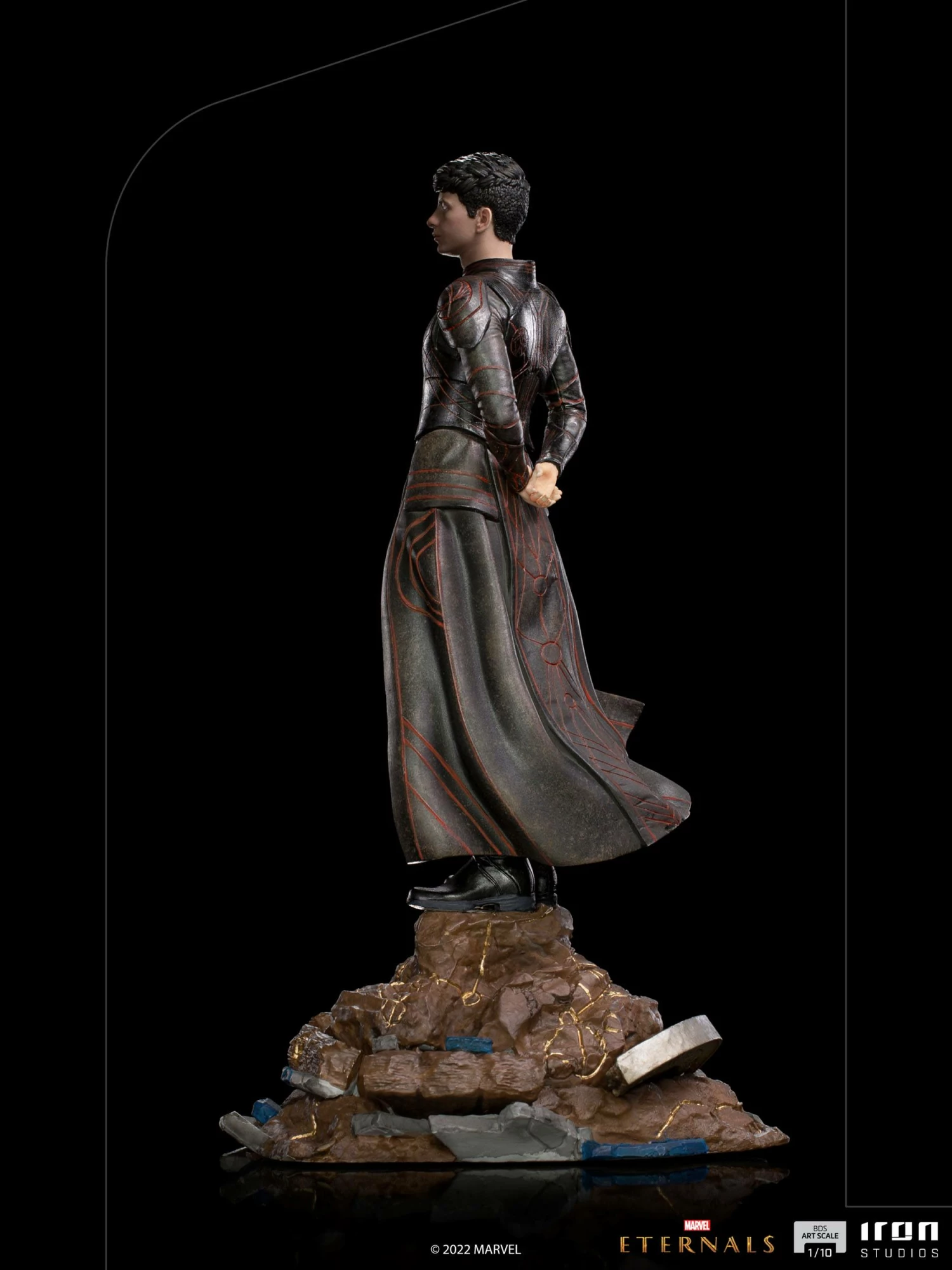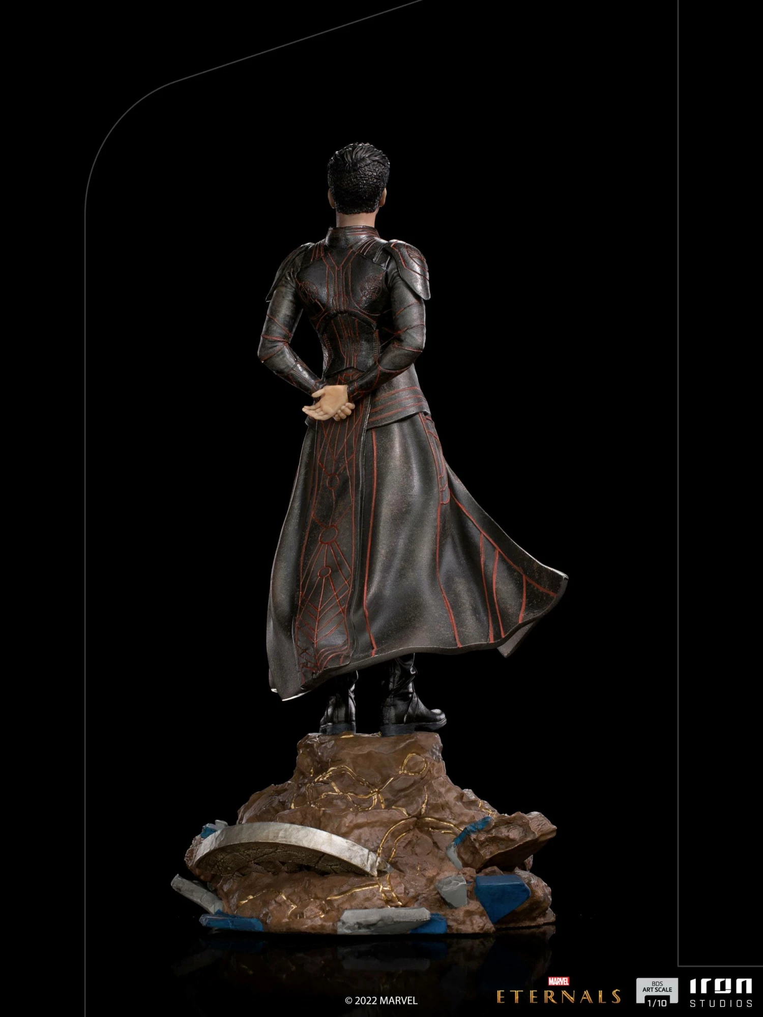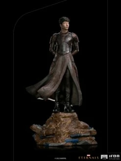With his hands on his back, contemplating with apparent inactivity, the greatest power of this immortal alien genetically modified hero is on his mind, which has the ability to control the mind of other beings using cosmic energy and the exercise of his will, both individually and in large groups. Frustrated for witnessing the civilizations of those who he swore to protect against the threat of the Deviant creatures exterminating each other in wars, without being able to intervene, he maintains a rebellious posture, objecting to his creator’s intents. With his black celestial armor, Iron Studios present the statue “Druig BDS – Eternals – Art Scale 1/10”, with the mind master member of the Eternals.