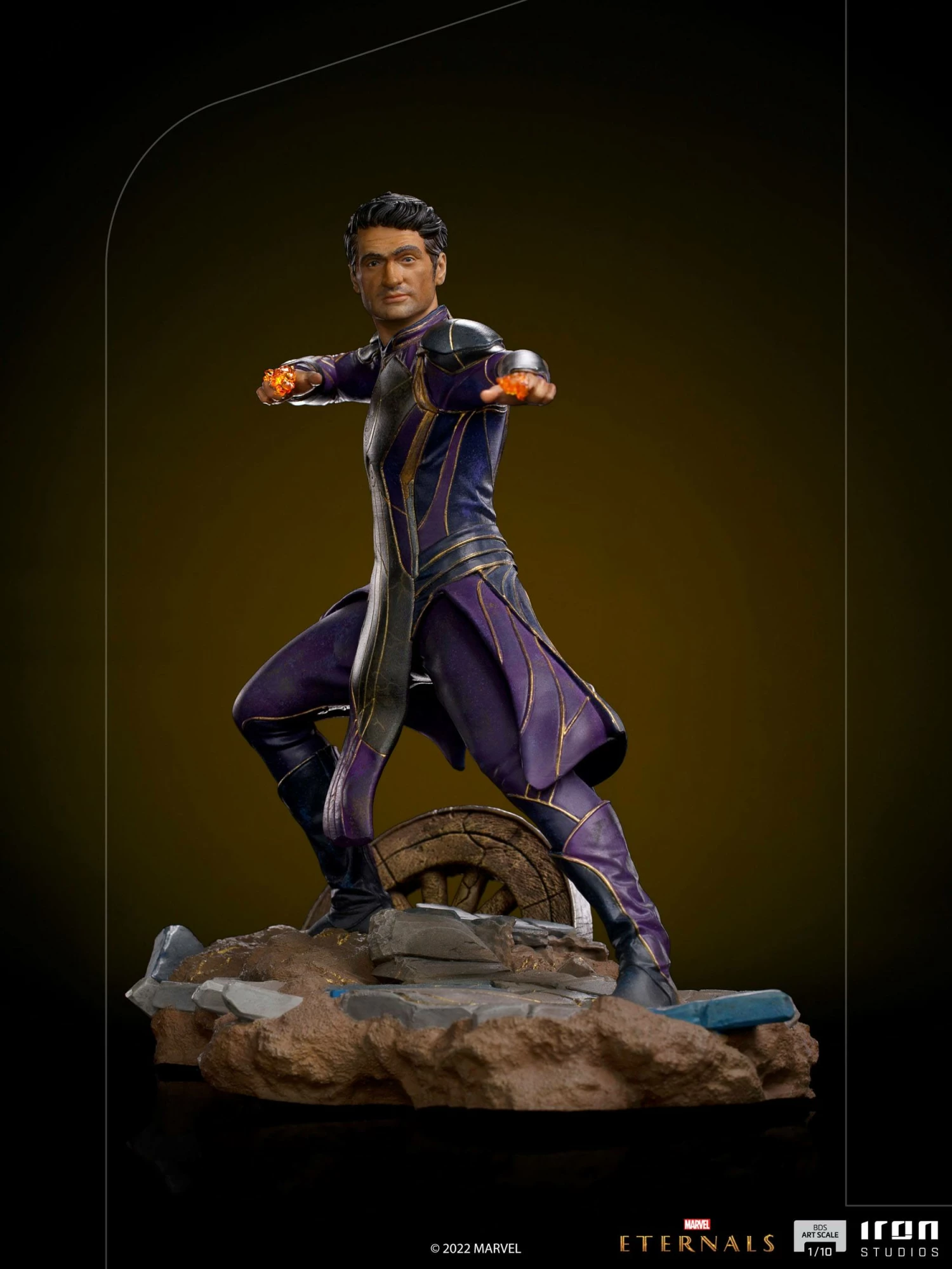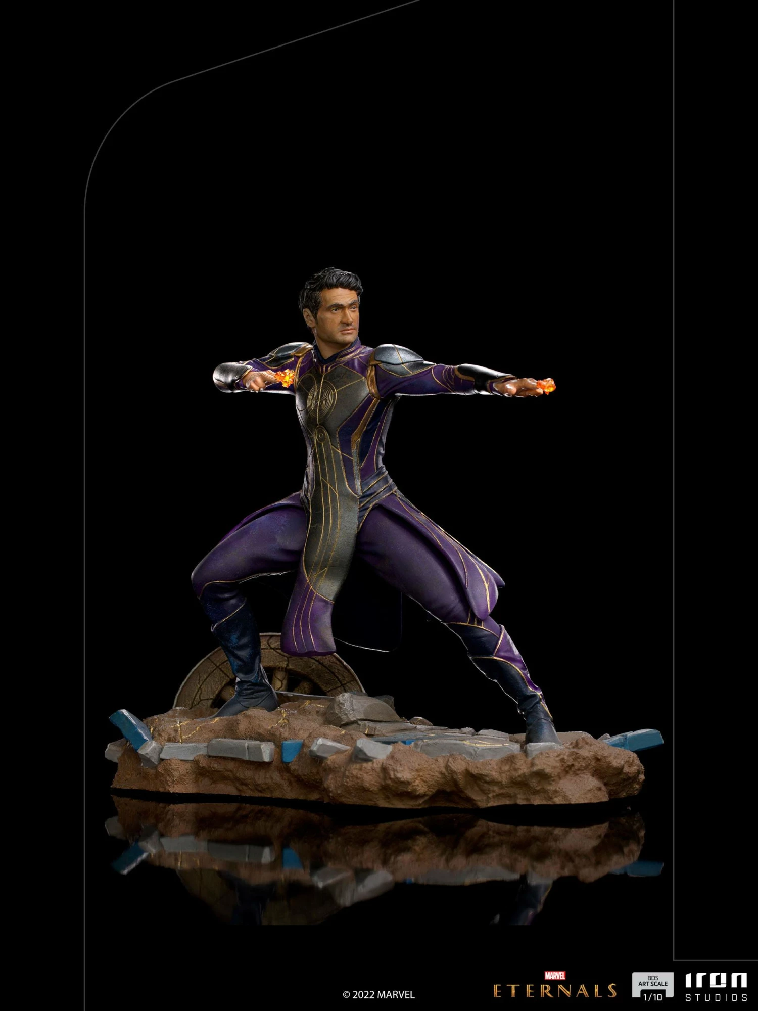 To hide his immortality, he faked being the descendant of a single lineage of actors. With his purple celestial armor, Iron Studios bring the statue “Kingo BDS – Eternals – Art Scale 1/10”, with the actor, dancer, director, and superhero member of the Eternals in the fight against the Deviants.