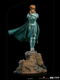 With her arms crossed in front of her small body, the fiery, playful, and sarcastic illusionist of the immortal Eternals, prepares to use her cosmic energy and abilities to create identical duplicates of herself, to change her appearance, or to create impressive and realistic illusions with sound effects. With the permanent aspect of an infantile teenager, she told stories for humanity throughout the centuries, creating many myths and legends throughout history. Wearing her turquoise celestial armor, Iron Studios bring the statue “Sprite BDS – Eternals – Art Scale 1/10”, with the small hero of red hair and acid humor of the Eternals.