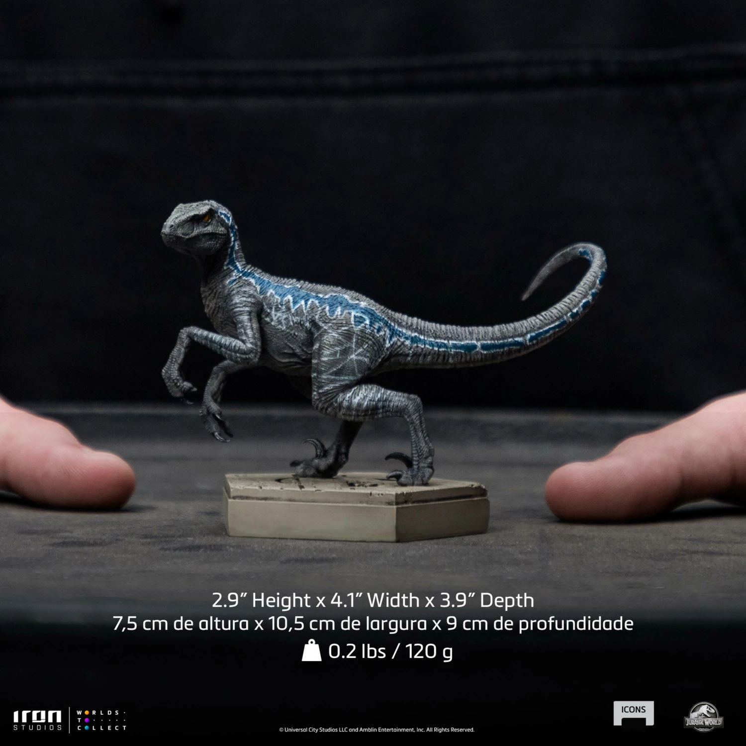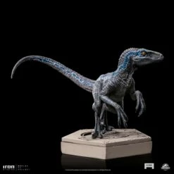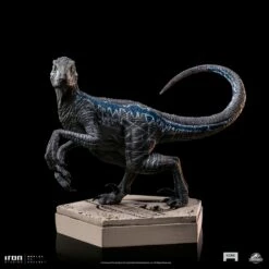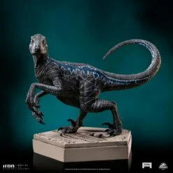 In a study project about the intelligence of the Velociraptors, Blue was created by InGen with military purposes alongside her sisters Charlie, Delta, and Echo. Named like that thanks to the blue strip with a white outline on her back, introduced in the movie Jurassic World (2015), she was the only survivor of her pack. Known for being stubborn, but faithful to her trainer Owen Grady, she demonstrated being capable of expressing emotions like affection, pain, and empathy. Reencountering Owen years later, when he was requested to rescue her in the abandoned Isla Nublar threatened by a volcano, Blue was hurt, captured, and taken to the continent alongside other dinosaurs for an auction, but she managed to escape and settle in the mountains of Sierra Nevada, where she had a baby named Beta through asexual reproduction, due to the Monitor lizard’s DNA used in her creation. Iron Studios bring the statue “Velociraptor Blue B – Jurassic World – Icons”, the second version in the collection of one of the most expressive and striking dinosaurs in the franchise, with the character in a motion pose, watchful and focused on anything out of the ordinary in her territory.