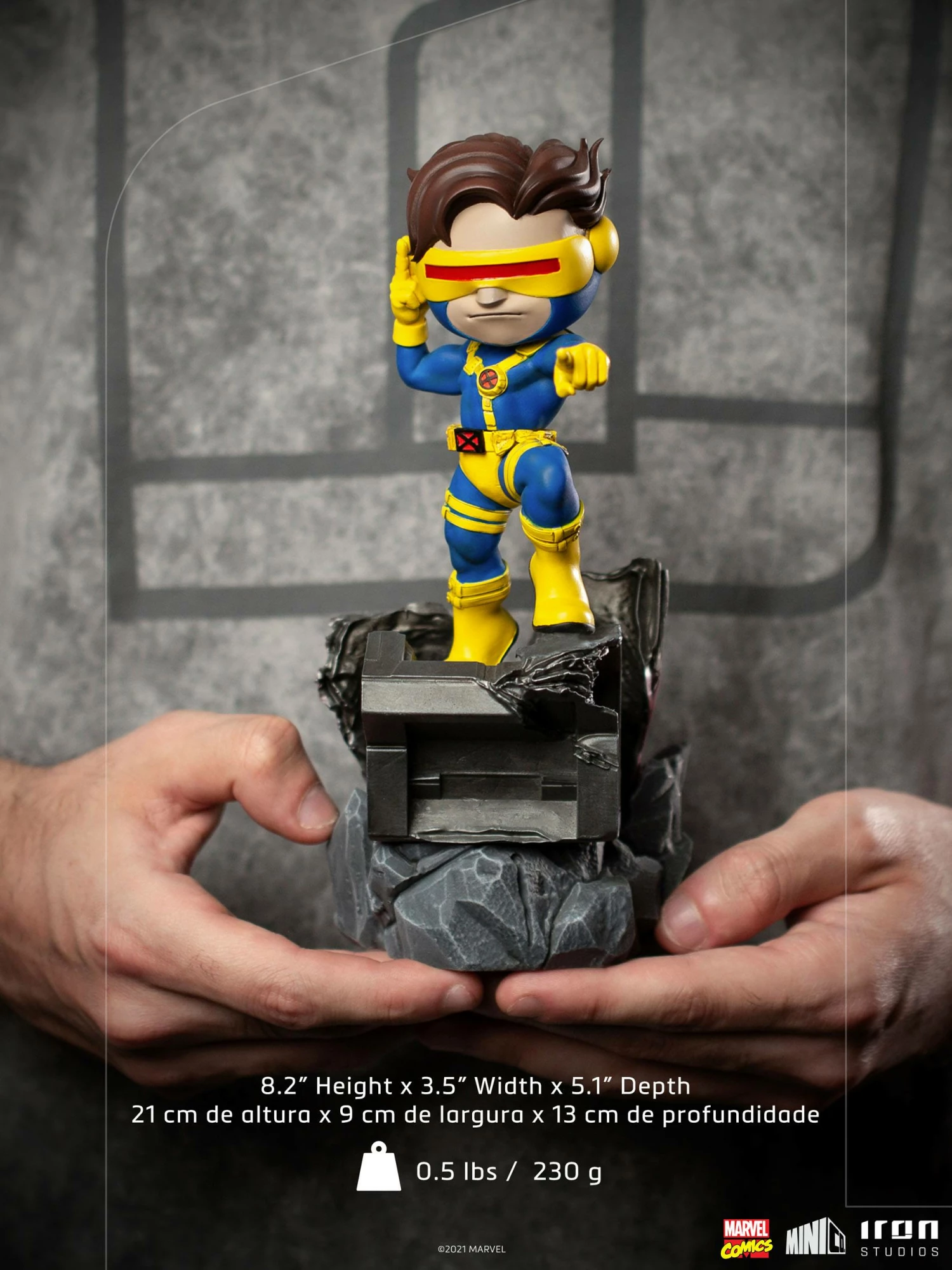 “Cyclops – X-Men – MiniCo – Iron Studios” features the hero showing all his strength, having his right hand ready to raise his visor and fire the energy beam, and his left hand pointing in the direction of their next mission. Cyclops, who is Scott Summers, was created by Jack Kirby and Stan Lee in 1963. Founding member of the X-Men group, and field leader of the team, he has the power to project pure energy through his eyes, with rays of concussive energy controlled by his visor, made of ruby quartz. The first student of Prof. X, he has been fighting for peace and equality between humans and mutants since he joined the X-Men.