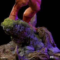 With the crack of his long whip, caused by the air displacement capable of breaking the sound barrier, the animalistic henchman of the infamous sorcerer lord of the Snake Mountain, manipulates with brutality the most fearsome and dangerous creatures from his planet against his opponents. No less threatening than the beasts he commands, over a base of a natural rock elevation covered by mosses and roots, the wild mercenary with orange skin and fur, wearing a red breastplate with an armguard, growls exposing his fangs like a predator ready for attack. Thus, adding forces to Eternia’s evil warriors in their MOTU line, Iron Studios present the statue “Beast Man BDS – Masters of the Universe -Art Scale 1/10”, with Skeletor’s savage right hand.