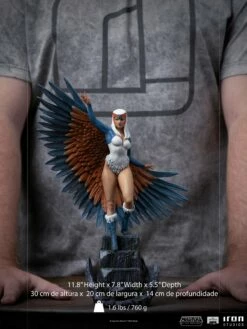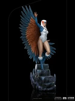 Exceptionally powerful within the limits of the castle of which she is the guardian, the beautiful sorceress raises her arms, opening part of the big wings with blue and orange feathers that compose her costume. Wearing a type of swimsuit and blue and white boots, with her head covered by a helmet in the shape of a falcon’s head, she gestures using her wide range of magic skills, while going down the stairs of Castle Grayskull. Thus, Iron Studios present the statue “Sorceress BDS – Masters of the Universe – Art Scale 1/10”, with the wise and altruistic watcher of the secrets contained in Eternia’s ancestral fortress, and He-Man’s counselor and mentor.