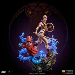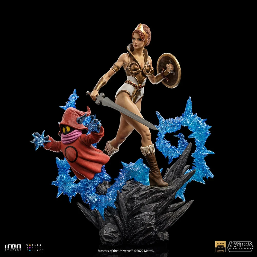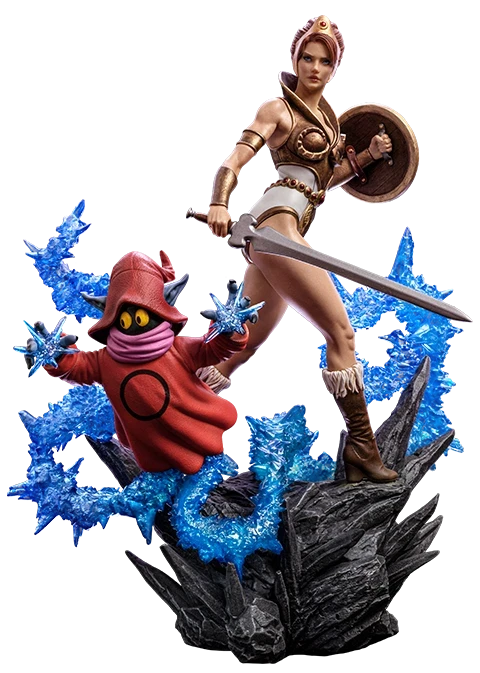 Based on the classic Masters of the Universe animated series, this new Teela and Orko statue brings a bit of Eternia to your home. This highly detailed and hand painted statue stands 14.2 inches tall.