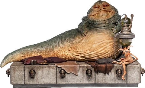 With connections and political influence, leader of the criminal underworld, the gigantic alien slug, known as Jabba the Hutt, is one of the cruelest antagonists of Star Wars. His greatest satisfaction is to torture his victims and humiliate his subjects. Jabba leads the crime in the galaxy from inside his palace, which is located in the desert, on the planet Tatooine, where he lives surrounded by mercenaries, security guards, and beautiful slave dancers, who represent his power and lust. In front of his dais, there’s a trap in the form of a pitfall, where Jabba offers to his monster and carnivorous mascot, Rancor, anyone who displeases him.