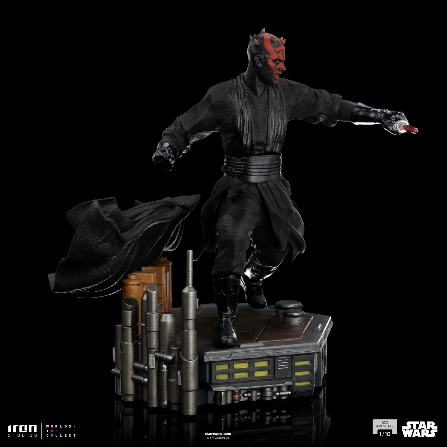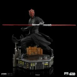 In the Palace of Theed on planet Naboo, the dark Dathomirian Sith warrior with all his skills uses Form VII, also known as Juyo, described as the cruelest combat form with a lightsaber. Adding his knowledge and discipline as a master in Teräs Käsi, a deadly and mystic martial art known in the whole galaxy for its lethality, he became one of the most efficient and lethal assassins among the Sith Lords. Inspired by the iconic dueling scene from Star Wars: Episode I – The Phantom Menace, where he faces the Jedi master Qui-Gon Jinn and his Padawan apprentice Obi-Wan Kenobi with his double-bladed lightsaber, Iron Studios, now with their global license, present the statue “Darth Maul BDS – Star Wars – Art Scale 1/10”. Over a detailed diorama pedestal that refers to the technological scenery of the power plant in Naboo, his expressive facial features gnashing his teeth in fury, all the movement from his pose and textures in his suit are perfectly portrayed in this fantastic figure, that undoubtedly brings immediately to the mind of all the fans the music track Duel of the Fates by composer John Williams.