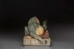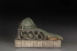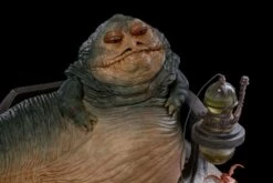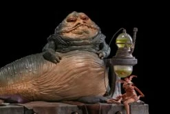 With his cruel eyes, the unscrupulous lord of crime judges his victims and watches his henchmen, resting his grotesque and greasy body on his throne, which is shaped like a concrete platform. His throne is surrounded by adornments in the form of bronze cyclopes, which have rings between their teeth to chain their slaves. The crime lord sits between fur cushions with a rustic hookah beside him, for his smoking pleasure, next to his mascot, and court jester, Salacious B. Crumb, a creature known as the Kowakian lizard monkey. In this way, Iron Studios presents its statue”Jabba The Hutt Deluxe Art Scale 1/10 – Star Wars – Iron Studios”, with the monstrous villain replicated as in his appearance in the sixth episode of the saga in theaters in “Star Wars: Return of the Jedi “from 1983.With connections and political influence, leader of the criminal underworld, the gigantic alien slug, known as Jabba the Hutt, is one of the cruellest antagonists of Star Wars. His greatest satisfaction is to torture his victims and humiliate his subjects. Jabba leads the crime in the galaxy from inside his palace, which is located in the desert, on the planet Tatooine, where he lives surrounded by mercenaries, security guards, and beautiful slave dancers, who represent his power and lust. In front of his dais, there’s a trap in the form of a pitfall, where Jabba offers to his monster and carnivorous mascot, Rancor, anyone who displeases him.Without offering a second chance to anyone who fails to serve him, Jabba is the greatest enemy of the anti-hero Han Solo, who the fearsome villain offers a high reward for his capture after Solo failed to refund him for a lost cargo of illicit contraband.Features:Limited editionBased on original movie referencesMade in polystoneHand paintedSize: 9 in (H) x 15 in (W) x 7.8 in (L)Weight: 11.2 lbs