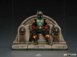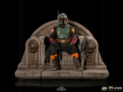 The bounty hunter sits on a throne decorated with monstrous bronze heads, which meticulously replicates the minimum details of the post-credits scene from Season 2 of the series “The Mandalorian”. Thus Iron Studios presents its statue “Boba Fett on Throne Deluxe Art Scale 1/10 – The Mandalorian – Iron Studios”. This statue features the iconic Star Wars mercenary in his restored Mandalorian armor, with his classic blaster rifle resting on the left arm of the concrete throne. The scene is a preview of “The Book of Boba Fett,” another Star Wars spin-off series scheduled for late 2021.