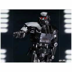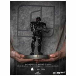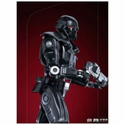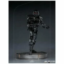 A figure covered in shining black armor is aboard Imperial Officer Moff Gideon’s space cruiser, directing his red photoreceptor eyes towards his objective, wielding a large blaster rifle and ready to fire with precision at any target. Iron Studios thus presents its statue of the fearsome “Dark Trooper BDS Art Scale 1/10 – The Mandalorian – Iron Studios”, one of the most efficient and powerful Imperial combat droids. Just as seen in the second season of The Mandalorian series, a spin-off from Star Wars on the Disney+ streaming channel.
