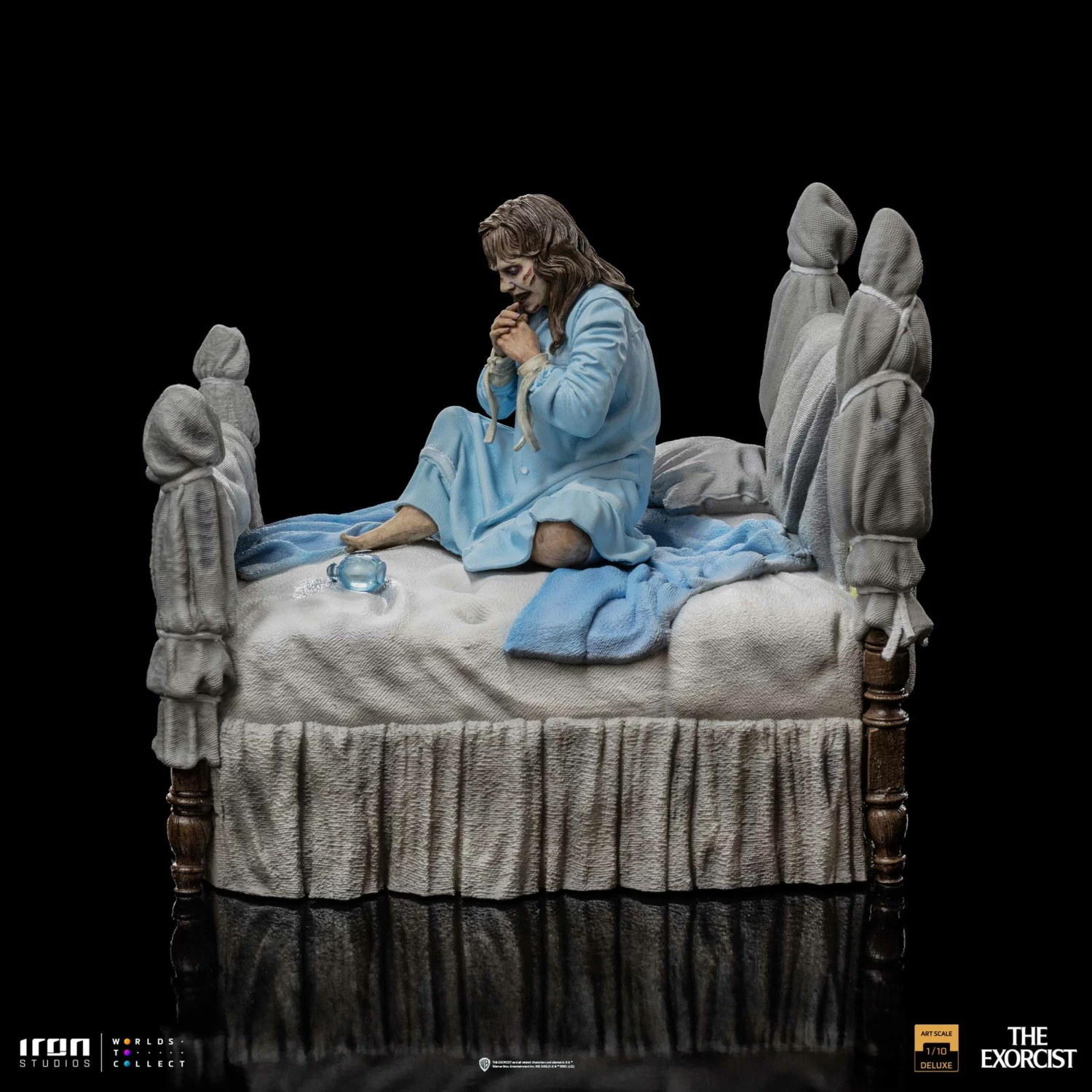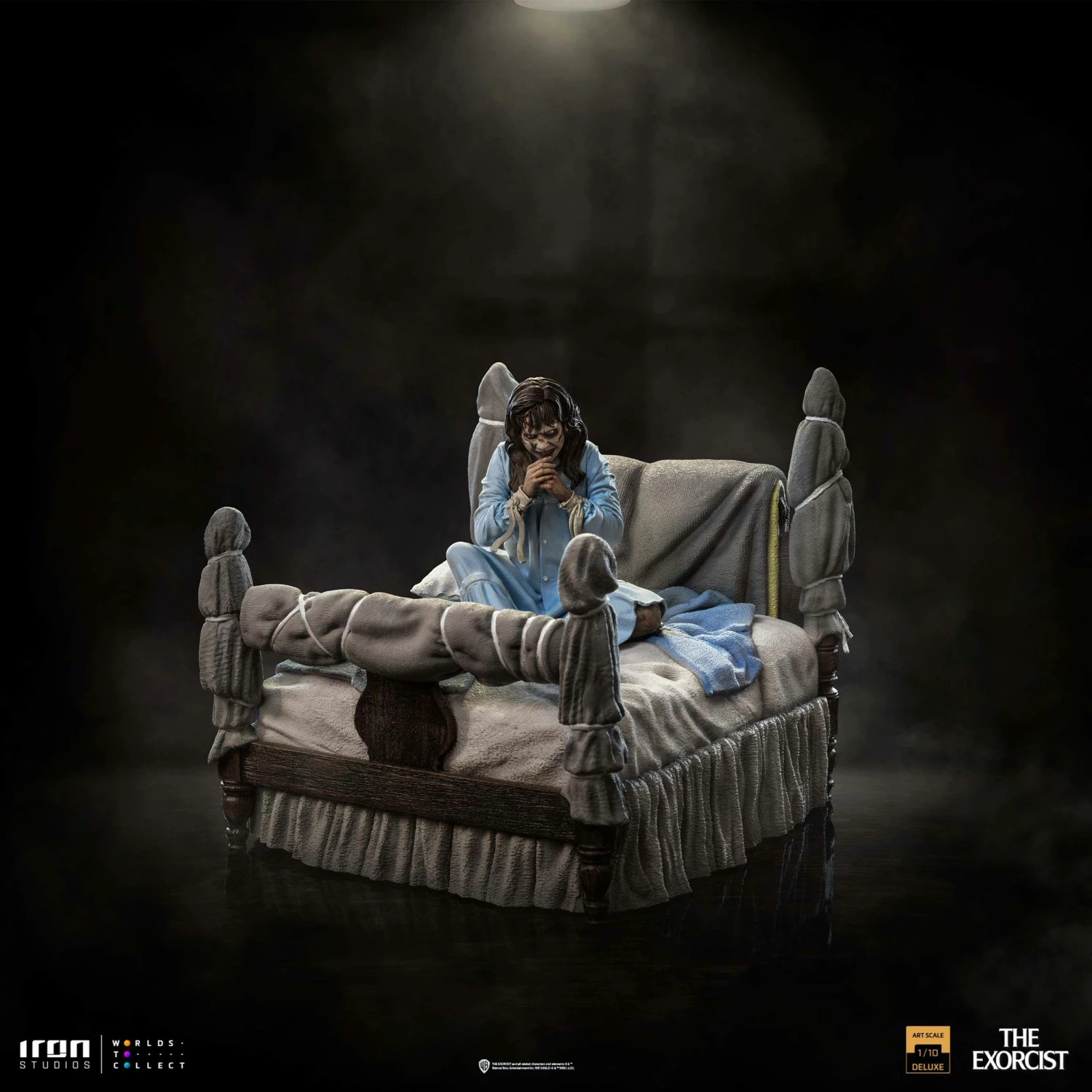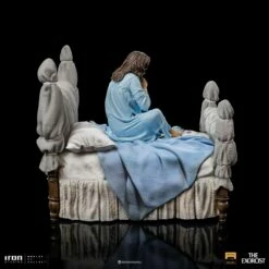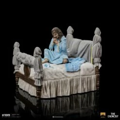 Trapped inside her room in a big house located in Georgetown, a historical neighborhood in the Northwest of Washington, in the U.S., over an old couple bed with padded headboard and footboard to protect its occupant, a demonic evil entity possesses the body of a preteen girl, turning her physically distorted with her body covered in wounds. Seating with a malicious and unhuman countenance, all that the diabolic spirit that lives in her body wishes for is to cause the death of its innocent host. Considered by many as the most terrifying movie of all times, Iron Studios present their statue “Possessed Regan McNeil Deluxe – The Exorcist – Art Scale 1/10”, with the possessed protagonist from “The Exorcist”, one of the greatest horror films ever done, celebrating its 50-year-anniversary of causing shivers of fear and horror in many generations.