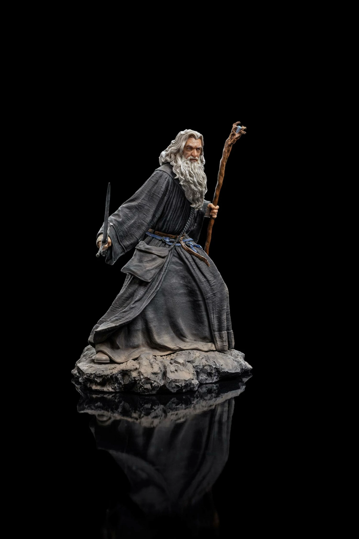 Next to his allies, members of the group called “The Fellowship of the Ring”, the ancient wizard cornered in Balin’s Tomb in the Mines of Moria gets ready for the imminent combat against a legion of Orcs, alongside a dangerous Cave-troll, that aims to attack and destroy them. Wielding his staff in his left hand and his elven sword Glamdring in his right hand, Iron Studios present the statue “Gandalf BDS – The Lord of the Rings – Art Scale 1/10”, produced meticulously faithful to the face features of the English actor Ian McKellen, and having the textures and details from his costume and accessories just like they were presented in the emblematic battle scene from the movie “The Lord of the Rings: The Fellowship of the Ring”. Over a pedestal of the petrified soil of the Mines of Moria, this statue is part of a diorama set that replicates one of the most memorable moments from the first movie derivative from the literary work of J. R. R. Tolkien by director Peter Jackson.